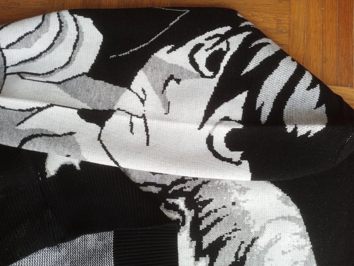 I've been watching jumpers with this pattern for years, and finally found this one at a good price in the Flash Deals. As for knits, I'm only interested in jacquard patterns, not printed ones, and this item didn't disappoint (I noticed that unfortunately some of the shops here on AliExpress sell tops that are made to look similar to this, but are actually bad quality printed sweatshirts instead of knits). Also, this jumper is soft, thick and as big as it's supposed to be. Looks good and lovely quality!