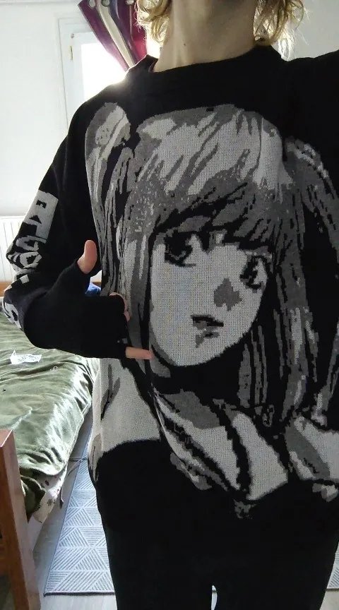 I was always skeptical of buying this sweater, because I thought it wouldn’t fit since I thought it was only for women despite it having a unisex look and its anime designs. The shirt fits perfectly, the material is not heavy so you can wear this almost all seasons except the brutally hot parts 🤣. The shipping was very fast in terms of shipping in the states. I think they must have a warehouse here. The product came less than 5 days.