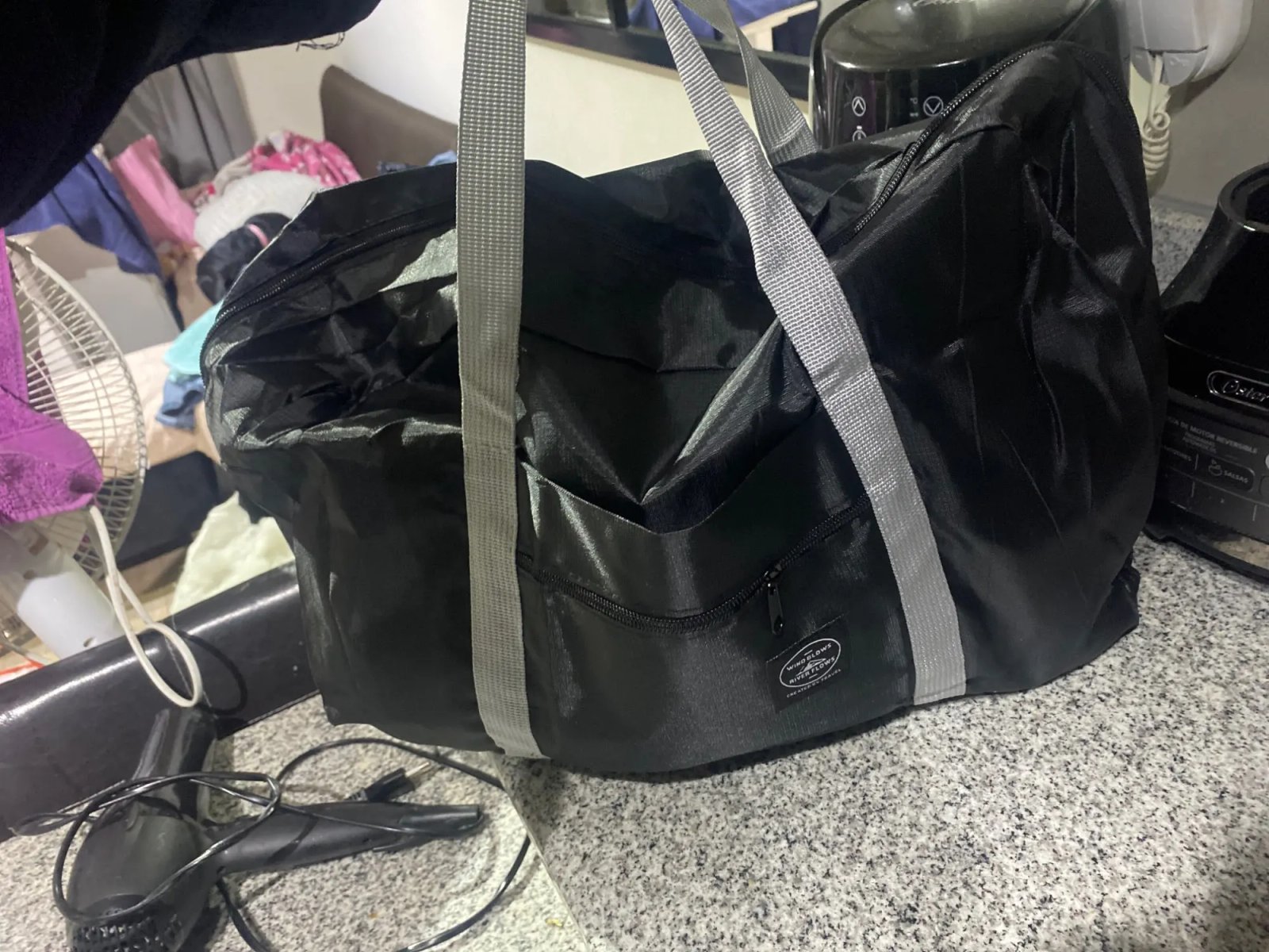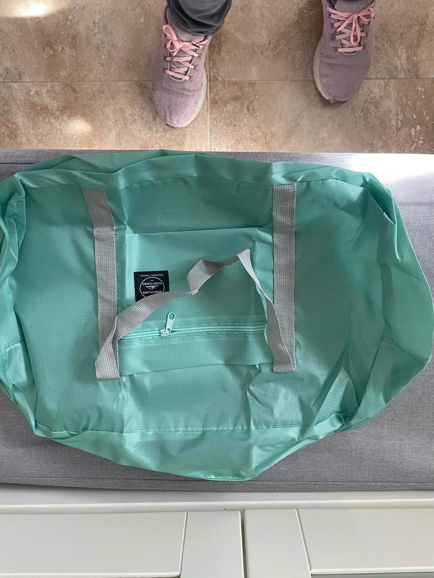 Fast delivery. Nice thin very useful foldable bag. Love to take it to the pool and put all my wet stuff into it. It’s washable too