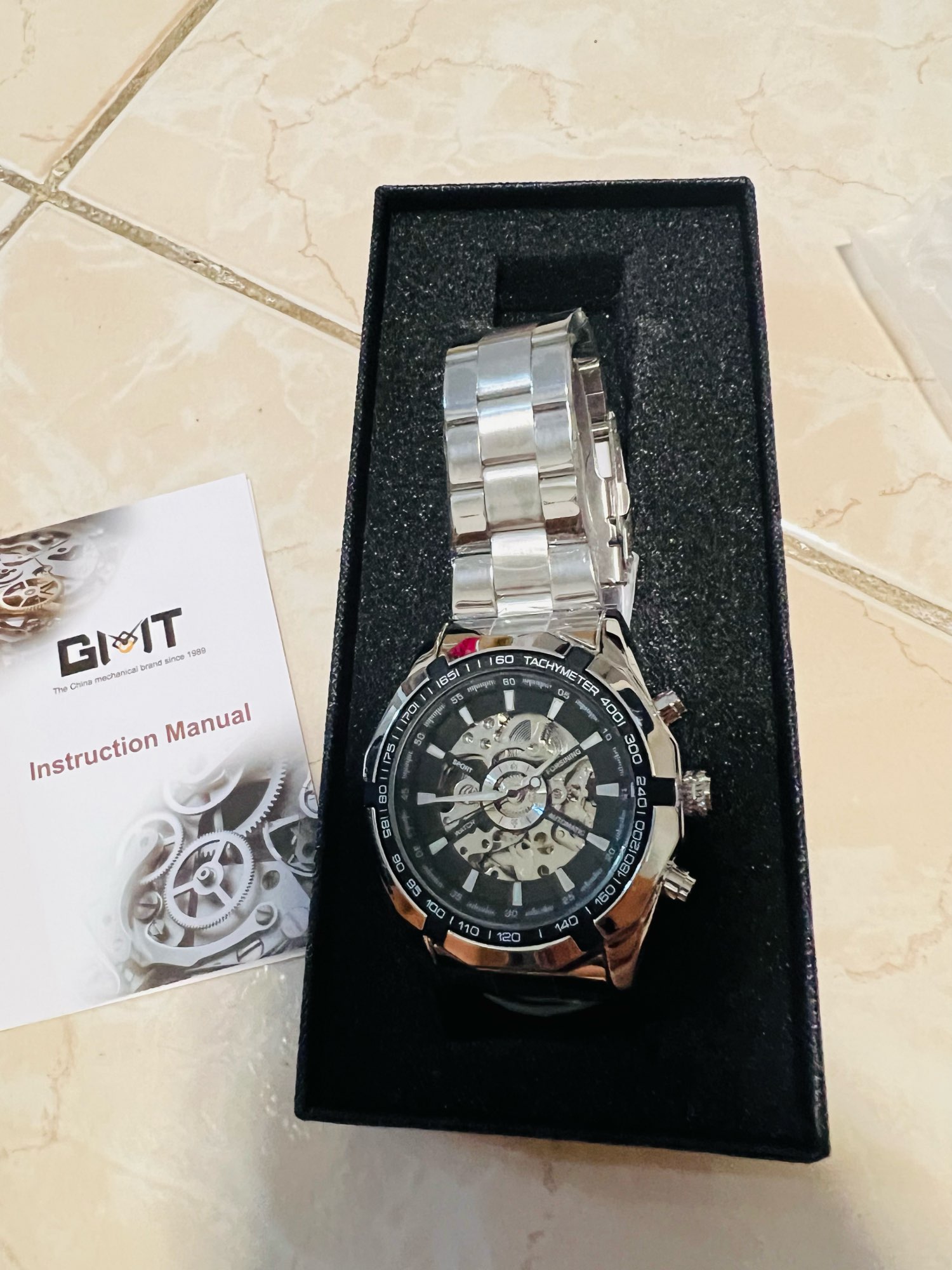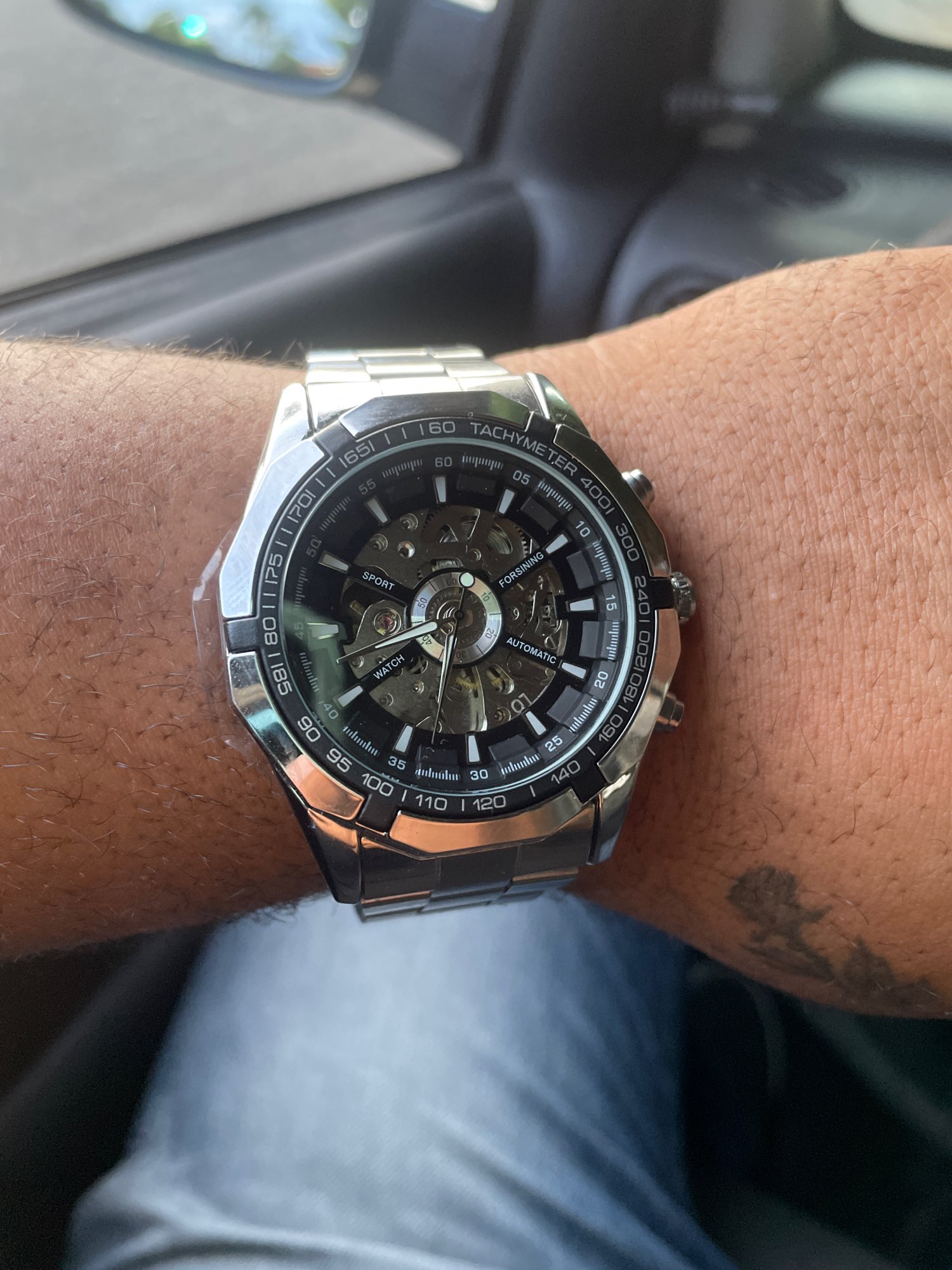 Beautiful watch, very well described, luxury, very good size for me, I only have the immense desire that the materials of the machinery be of quality to last, hopefully it is good steel and good temper, arrived 5 days before the promised date perfect packaging, excellent store.
