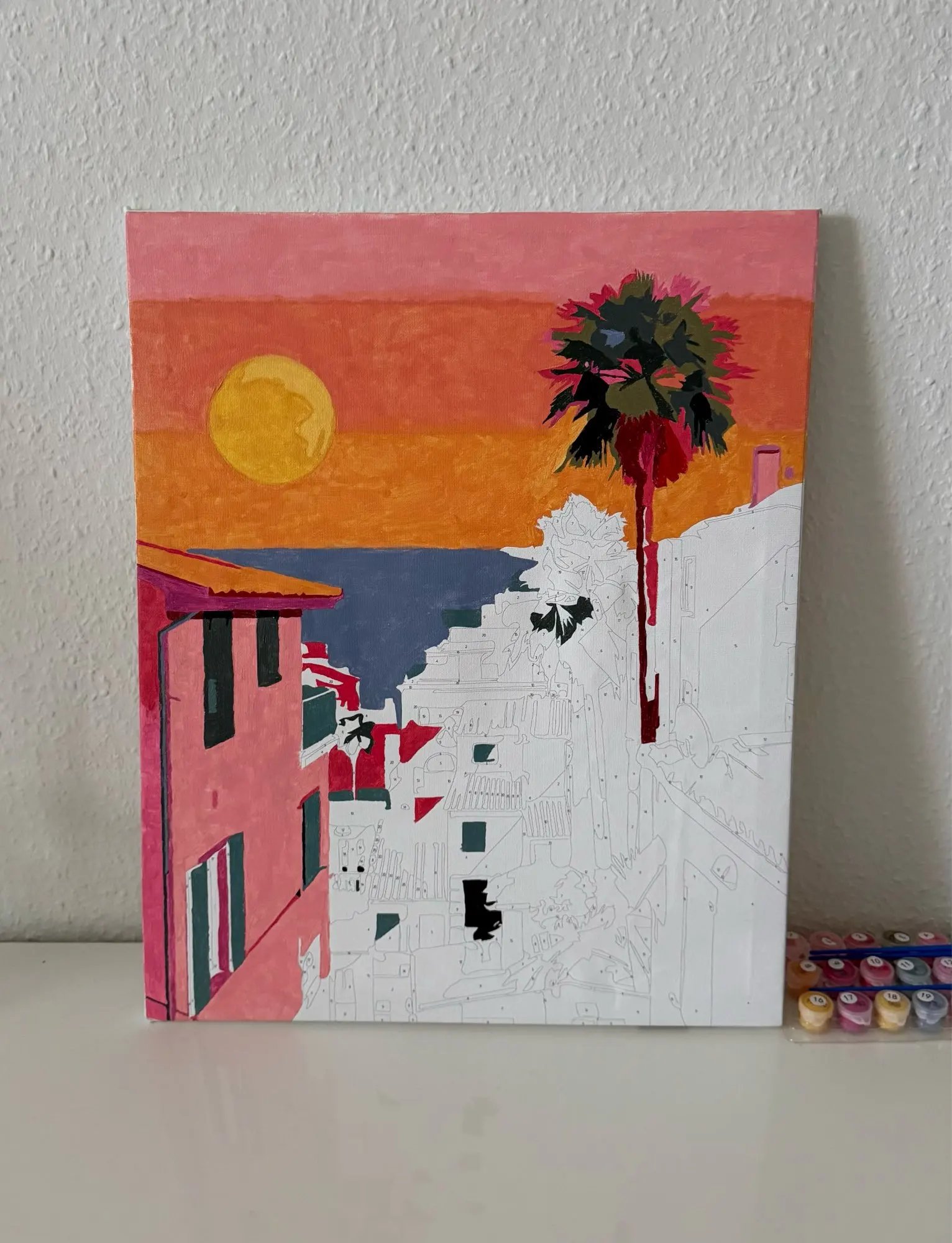 The painting is as described. All colours attached as well as the frame. Cannot wait to continue painting