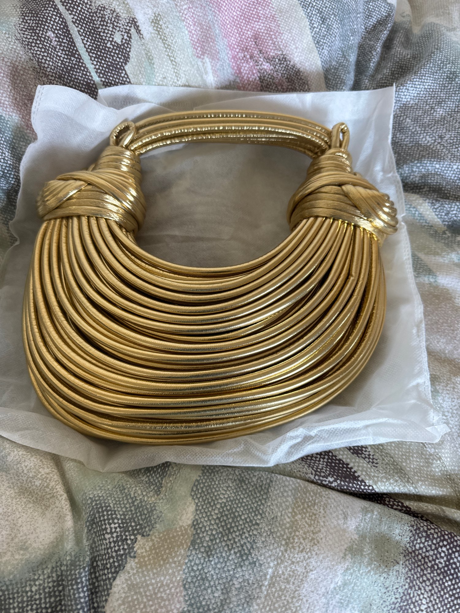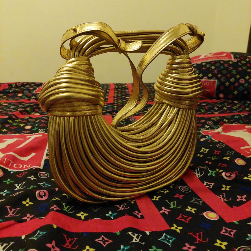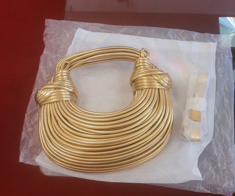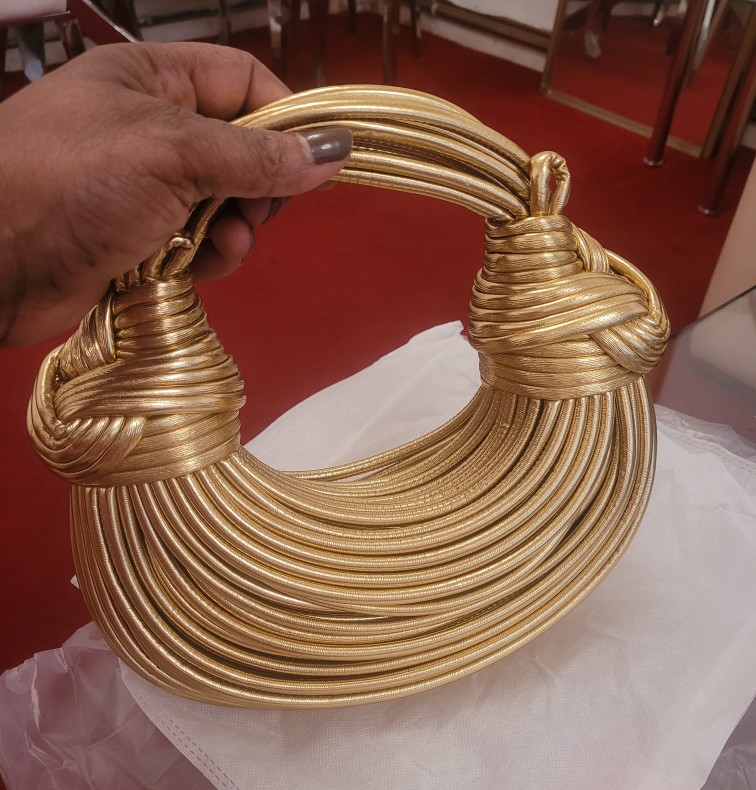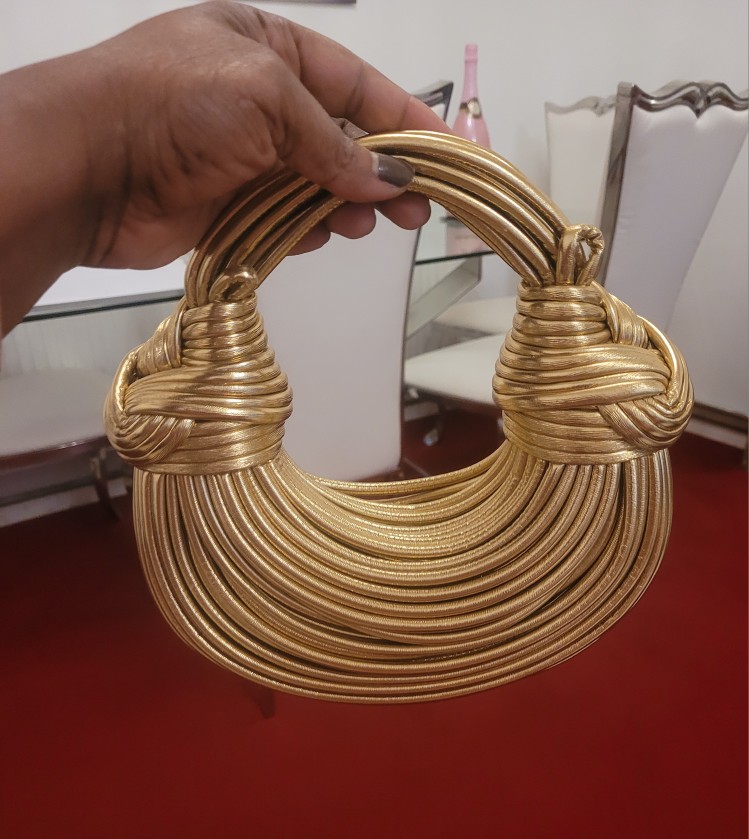 got gold color noodles bag n its same as store description except inside cant hold much thing, maybe only lipstick tiny thing, cant hold 6 inch phone, but still fun to carry, thx