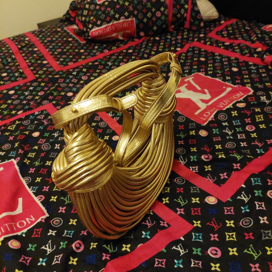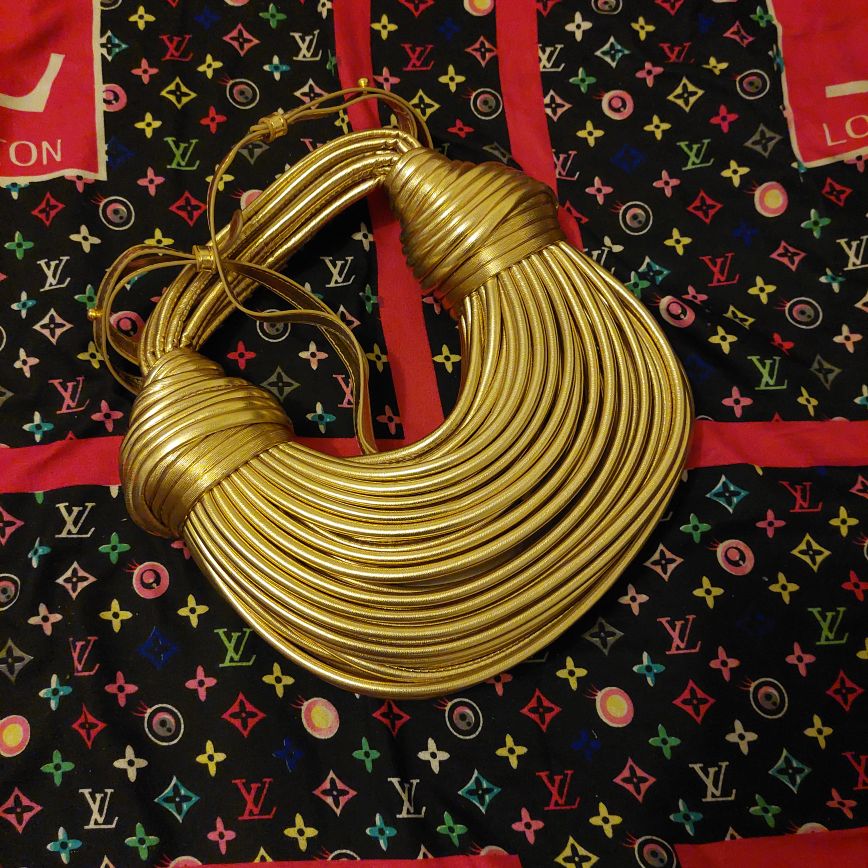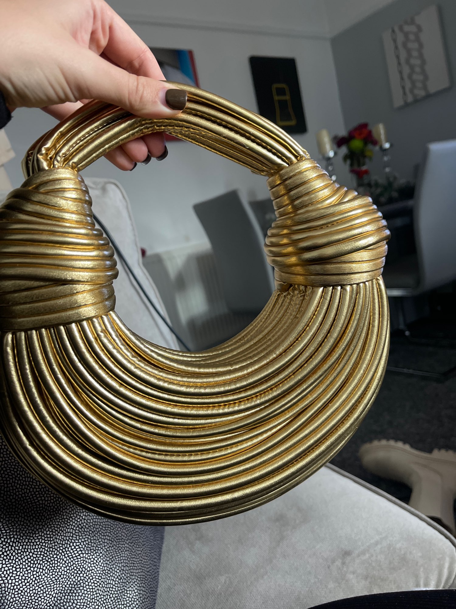 got gold color noodles bag n its same as store description except inside cant hold much thing, maybe only lipstick tiny thing, cant hold 6 inch phone, but still fun to carry, thx