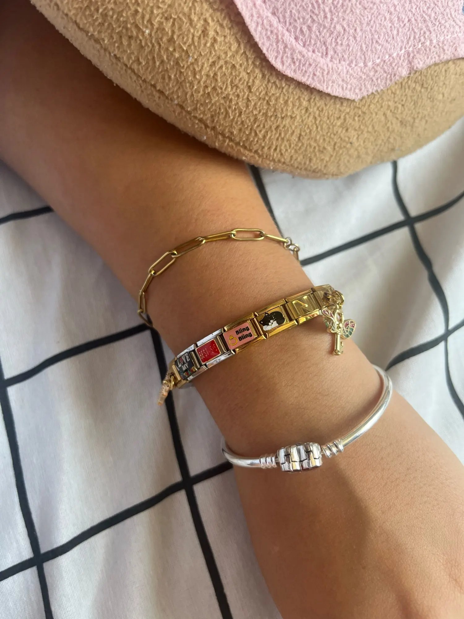 everything arrived pretty quick, love the quality and thank you so much for the gift. Just a thing, it's hard to add charms withouth a charm tool. Also I wish store to send the bracelet inside a box, everything came in a plastic bag.