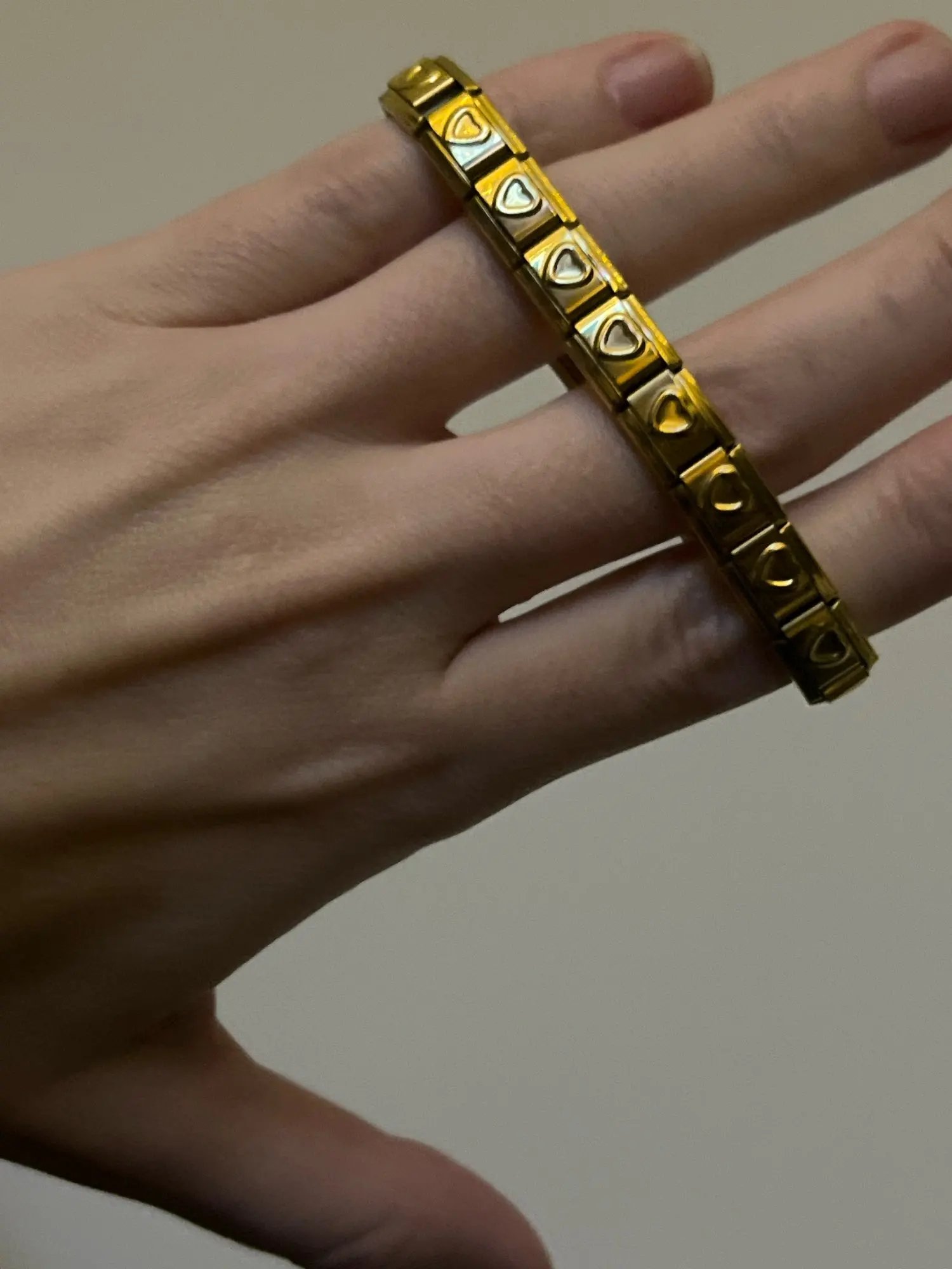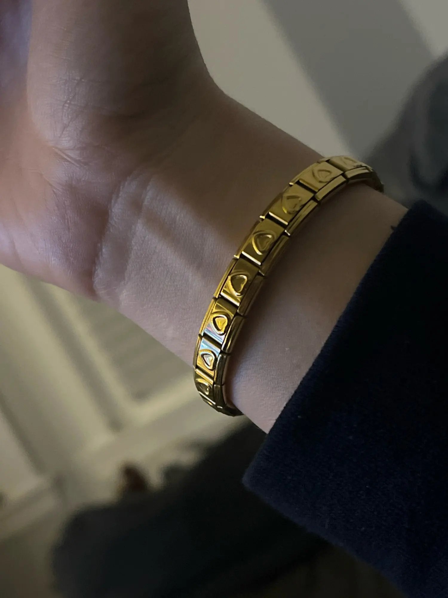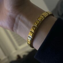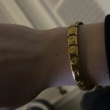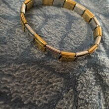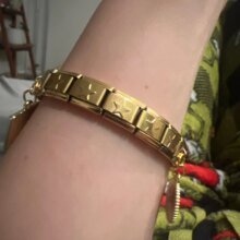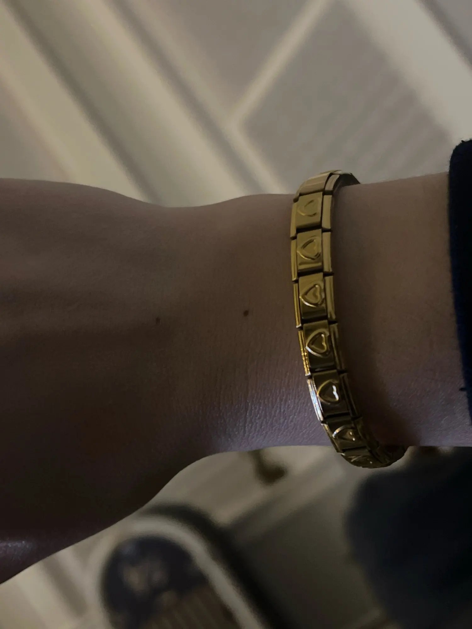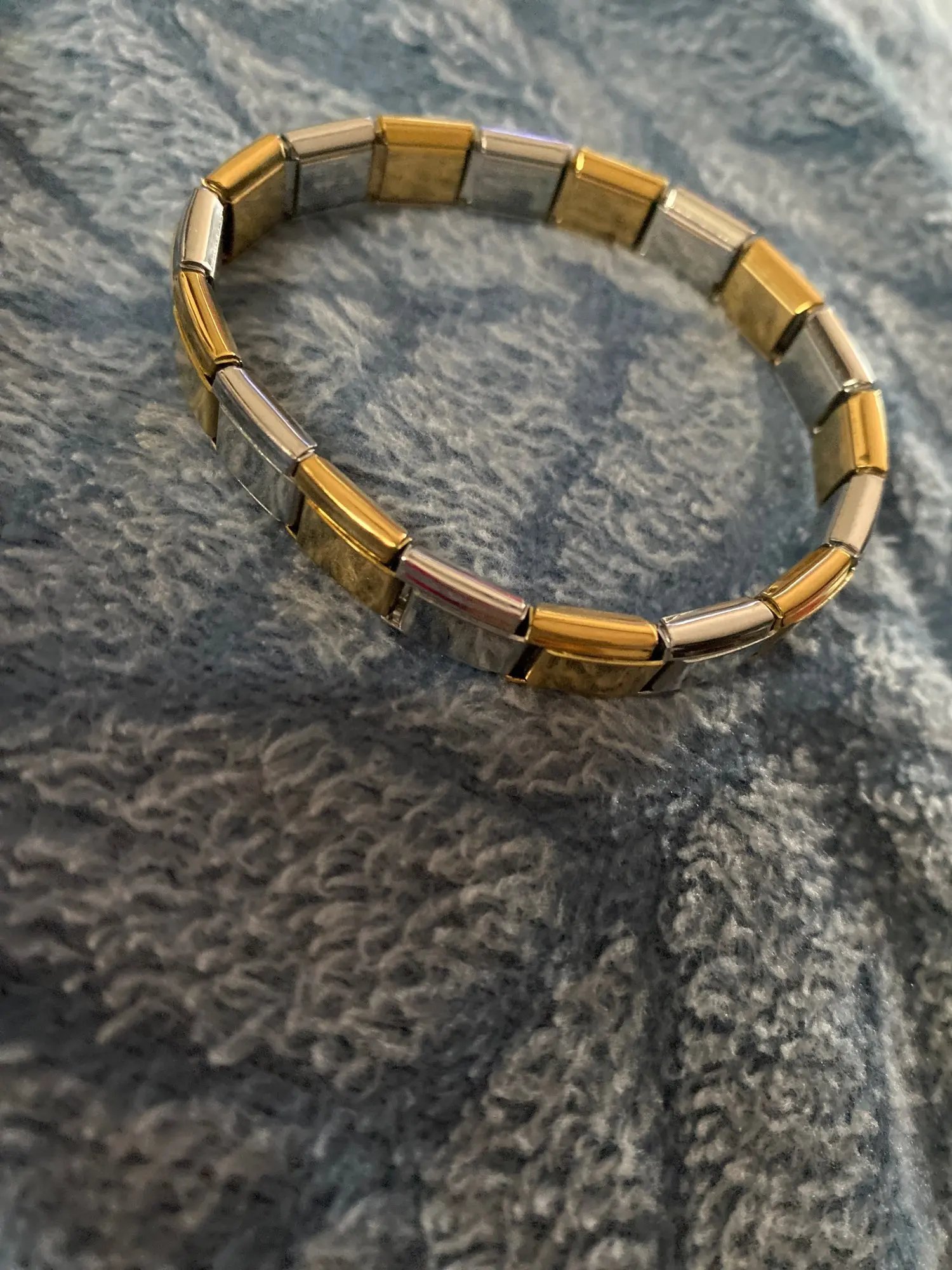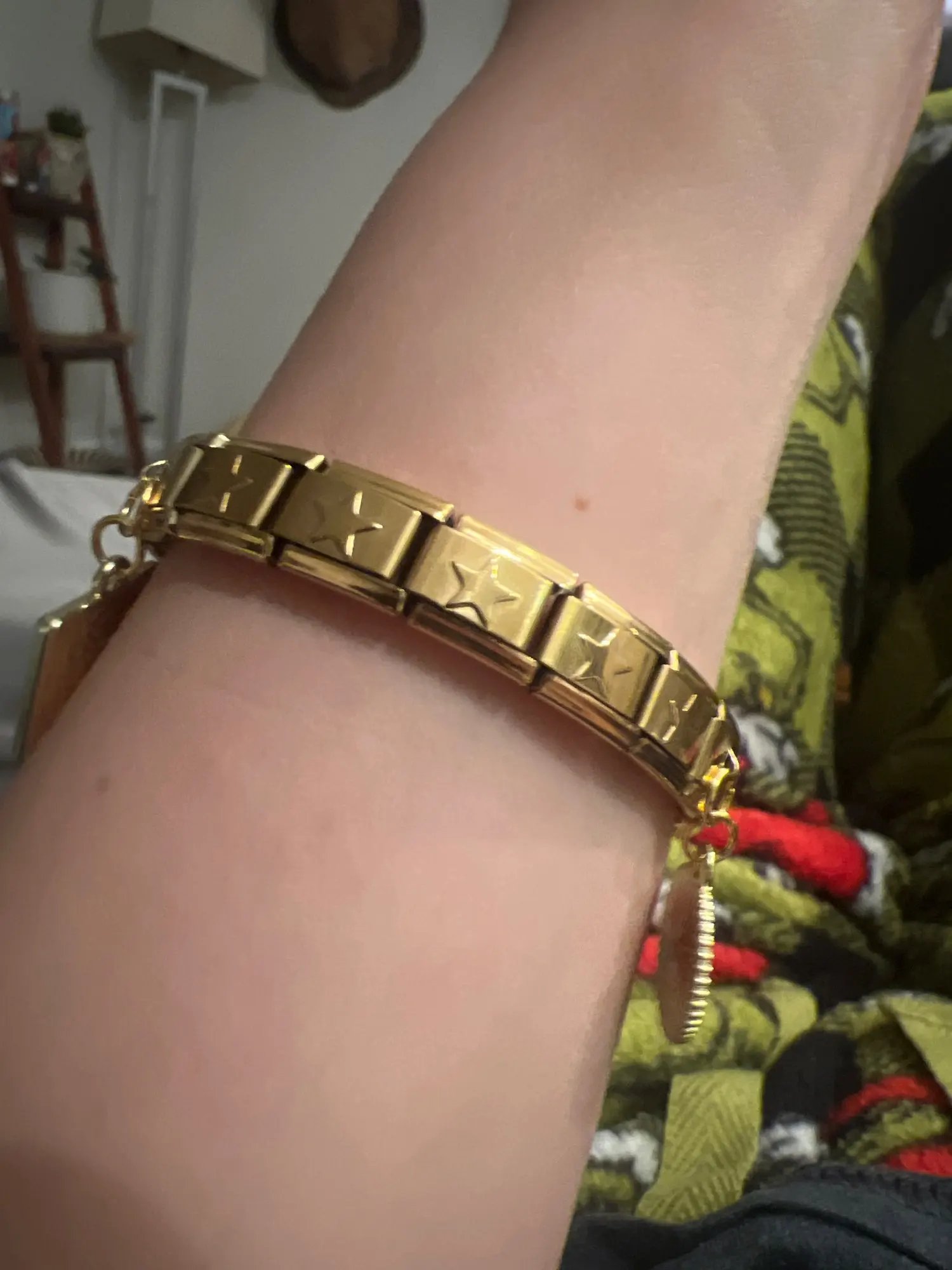 The gold is the same tone as my real Tiffany’s bracelet. Really cute