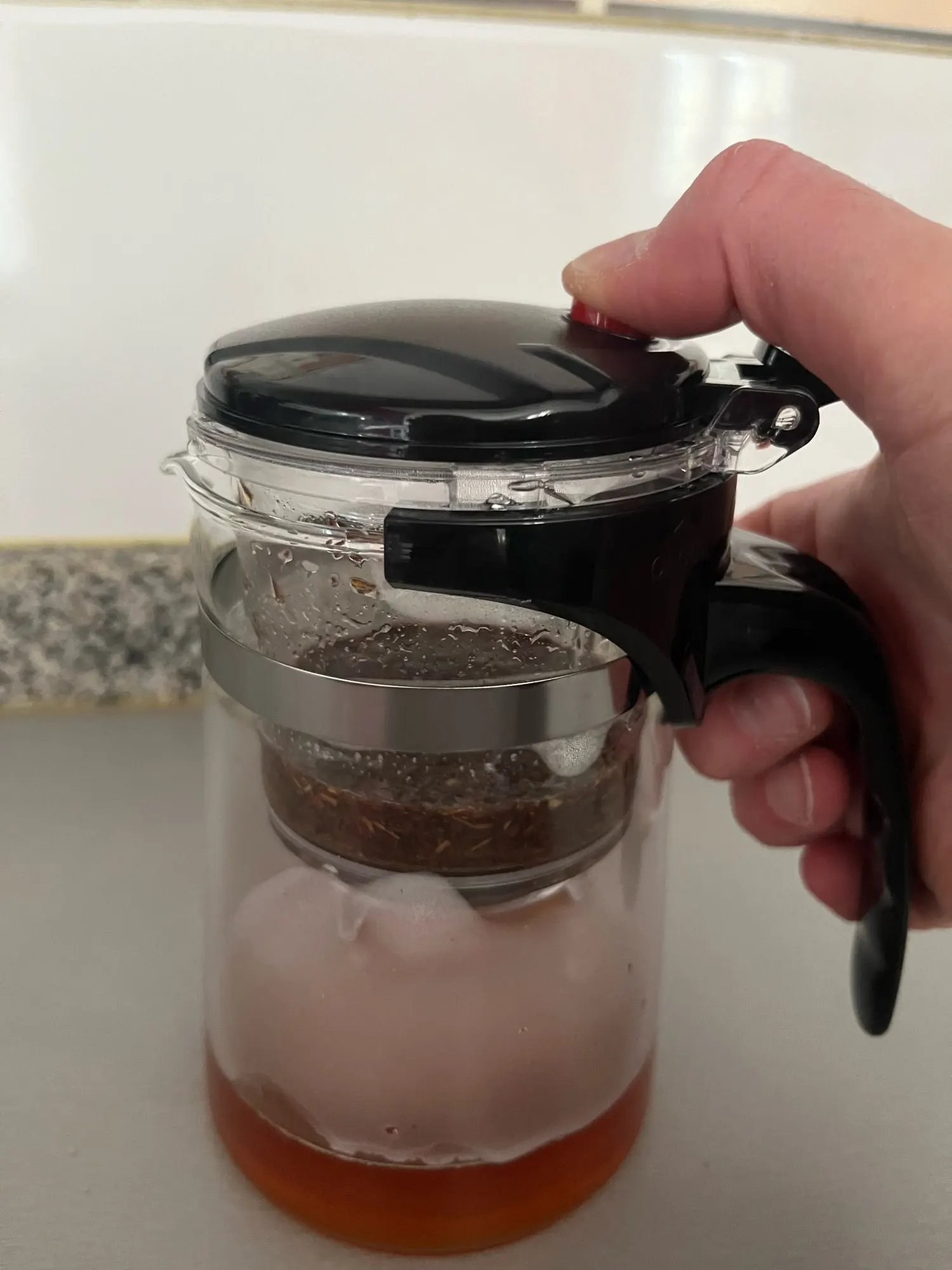 Works as described and the mesh if fine enough that even the smaller teas don't sneak through (which I've had with other products in the past}. Even being glass it came through fine and unbroken.