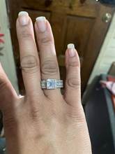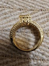 Nice ring! Not exactly like a genuine gold/diamond looking ring if you look closely enough, but very nice from a distance, and that's how most people will look at it. I also know this ring will only last as a nice looking one for a maximum of two months, especially if used daily, but I practically always use these kind of rings instead of genuine ones for instance when travelling or going out at night so that if I'm robbed or misplace my rings I will not loose my real diamonds .