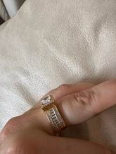 Beautiful, spectacular ring decorated with shiny stones! Looks luxurious. Previously bought such a silver, now I ordered it in gold. Recommend! Thank you :)