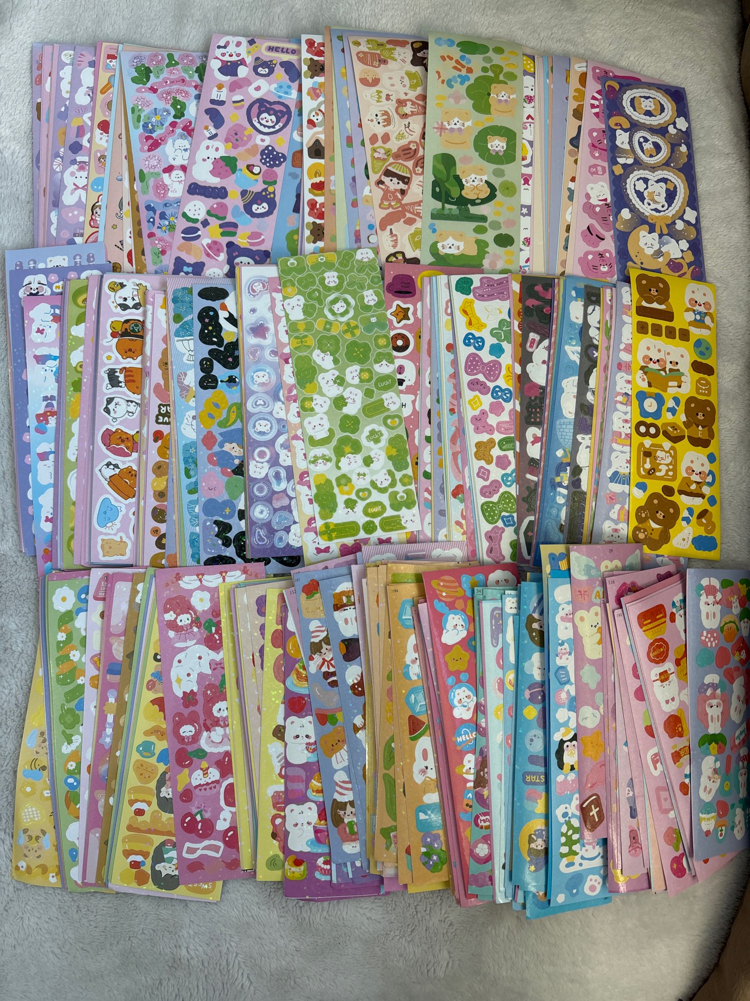 you are the cutest things I’ve ever seen. There are no repeats, which is amazing because as many have the same color none of them are the same. So they’re all unique. I love how I can organize these by color like I said earlier most of them have similar color so I can use different sticker on the same piece of paper and the colors will still align beautifully. There are also so many so I’m so glad because it was so cheap and I think I was able to get this for free actually which is crazy but I’m going to use this for a penpal and more.