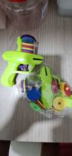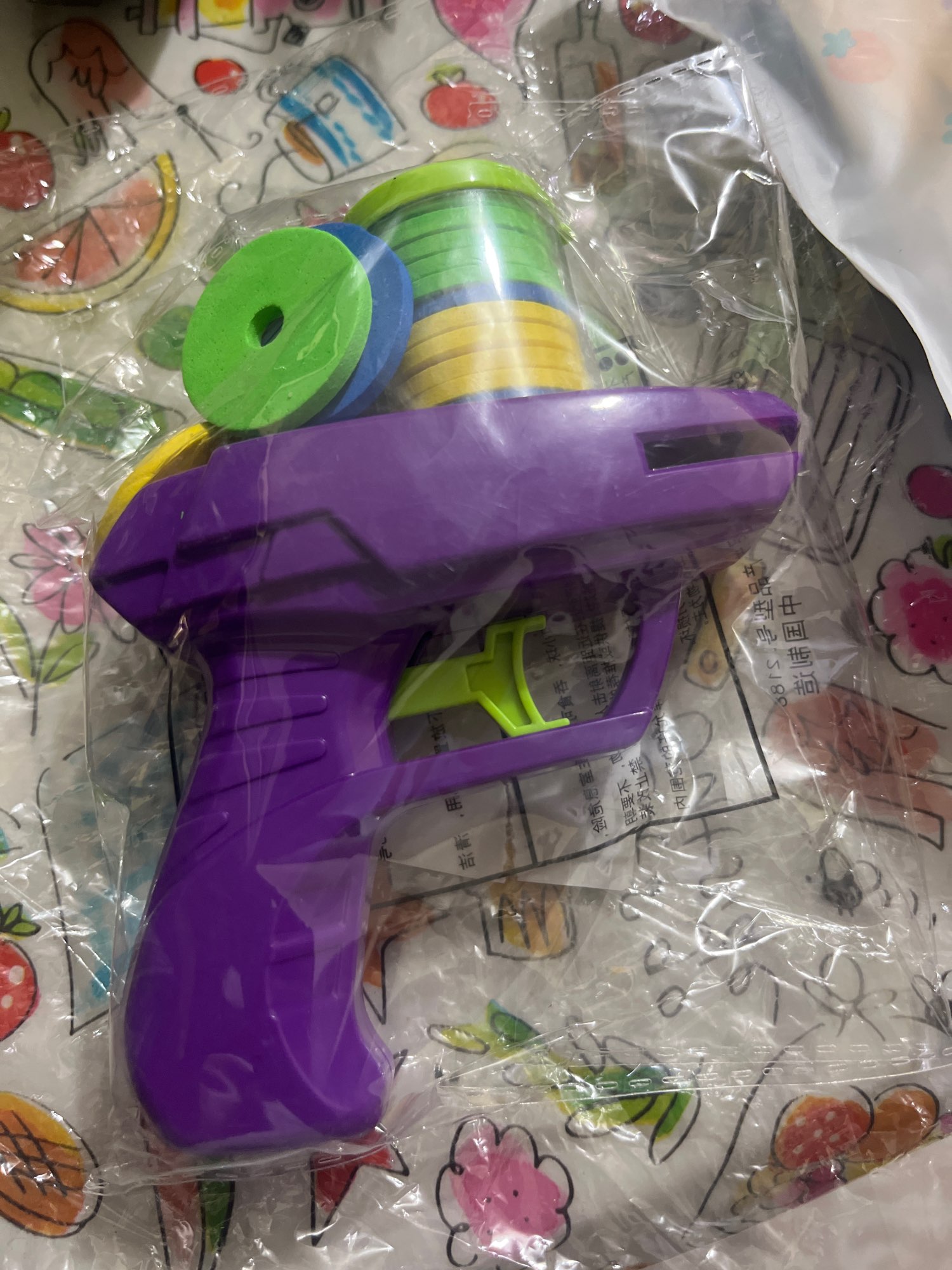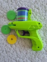 Linda y buena pistola, que resulta perfecta para niños. La pistola es de plástico y los discos de goma