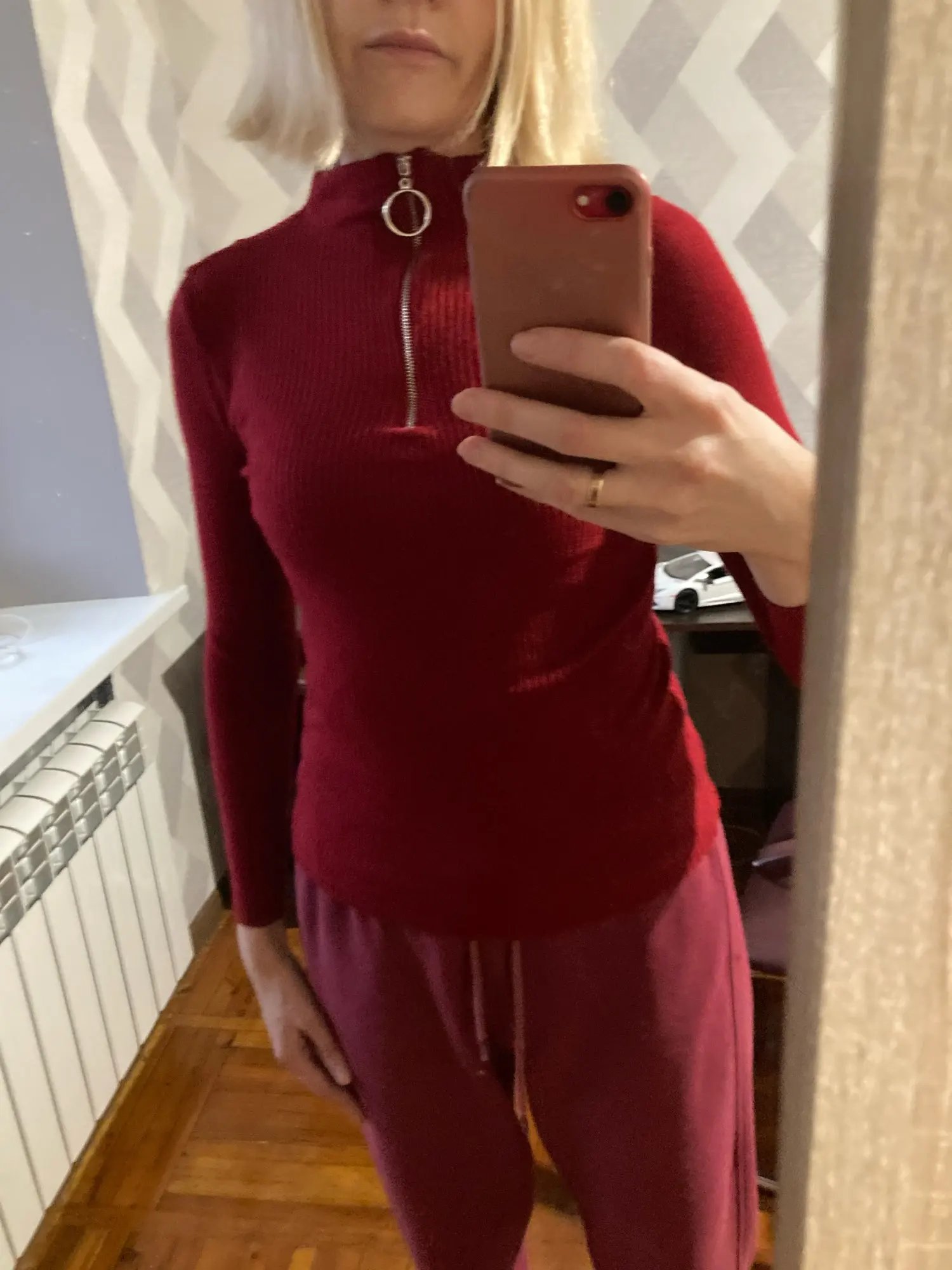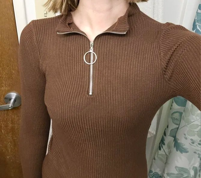 Beautiful! Equal to the image and in addition it is of a super soft fabric. I recommend it! It stretches quite a bit and I had no problem with the zipper. Recommended