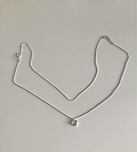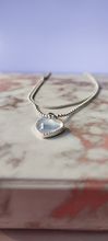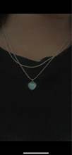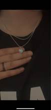 It is a double necklace, the charm is a pebble like crystal with a holographic sticker in the background which makes it a greenish/bluish tone, it is cute!
