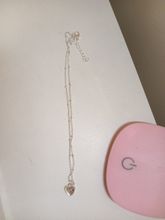 Cute necklace, looks the same as the store's photo. The heart is shimmering in the light, the colors of all the elements are combined and look good☺️