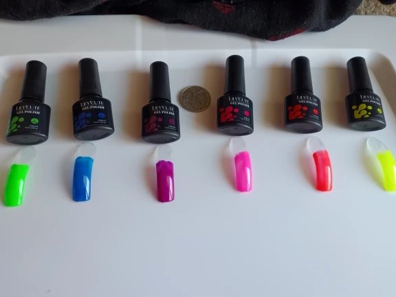 great product. .love the brightness of the colors. I love them all but my favs are the purple, pink, and blue. these pigments are 2 coats for great coverage, my photos are 1 coat and color is still awesome.