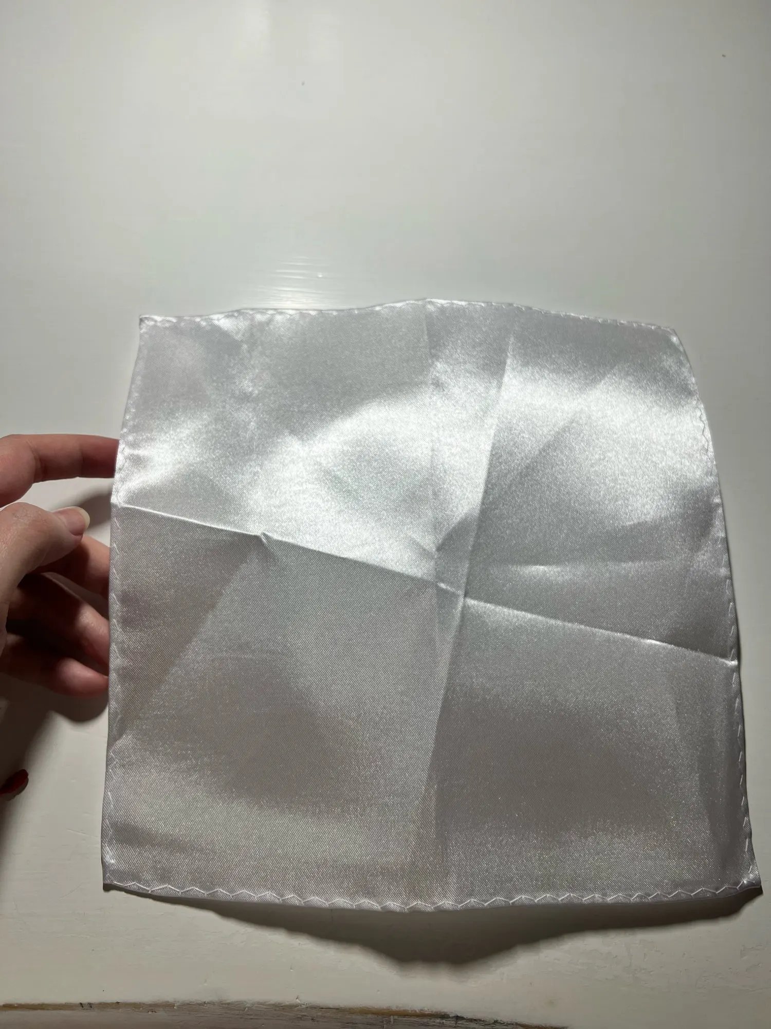 A very nice bright white handkerchief for the suit pocket. It just needs to be ironed. I can recommend it, I am satisfied with the purchase.