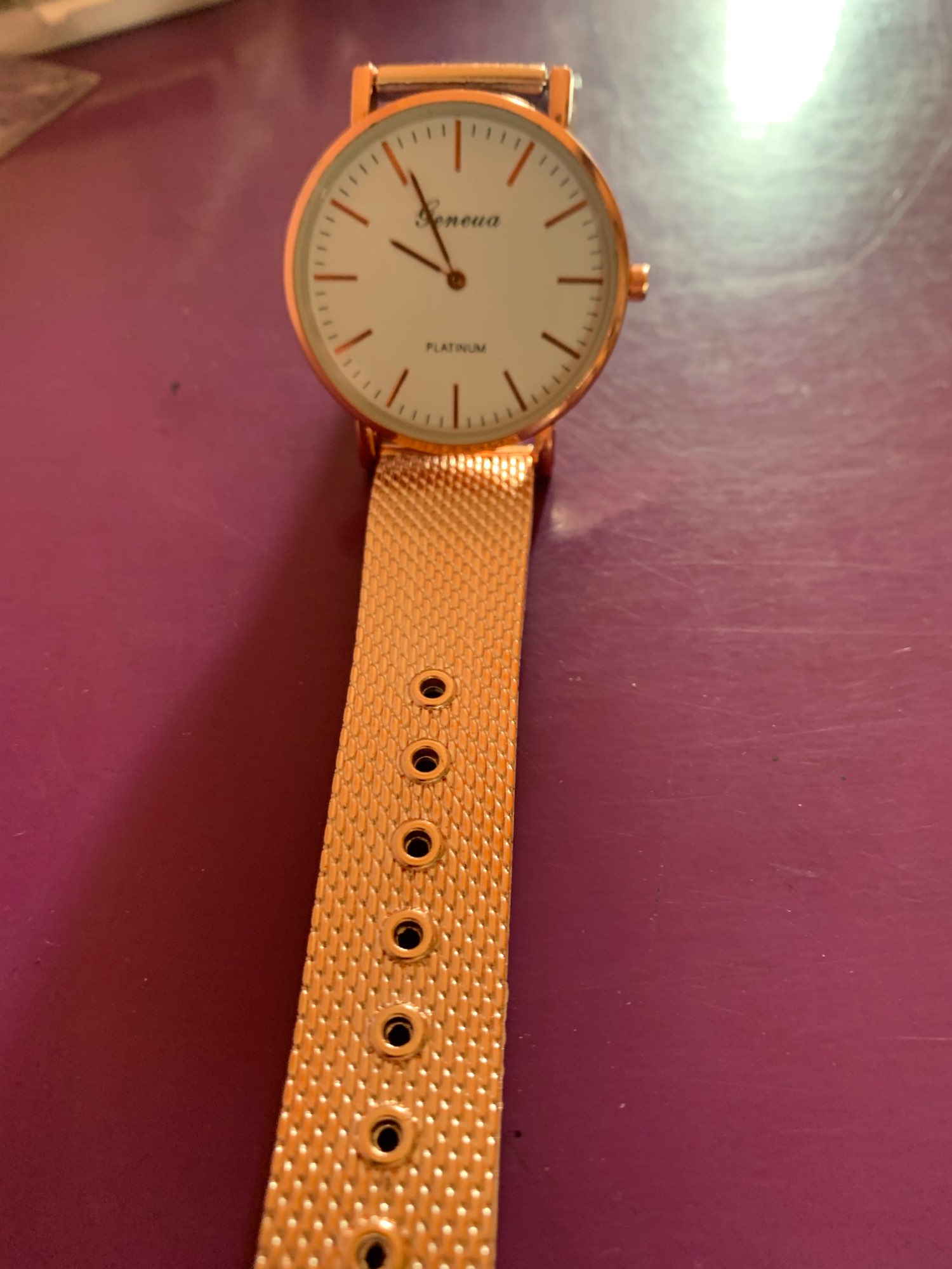 The watch is beautiful and interesting, but I did not expect that her bracelet is plastic anyway I was impressed by my wife thank you.