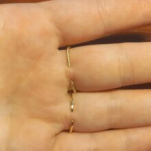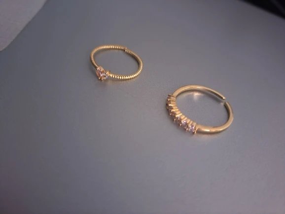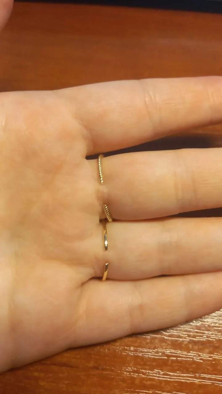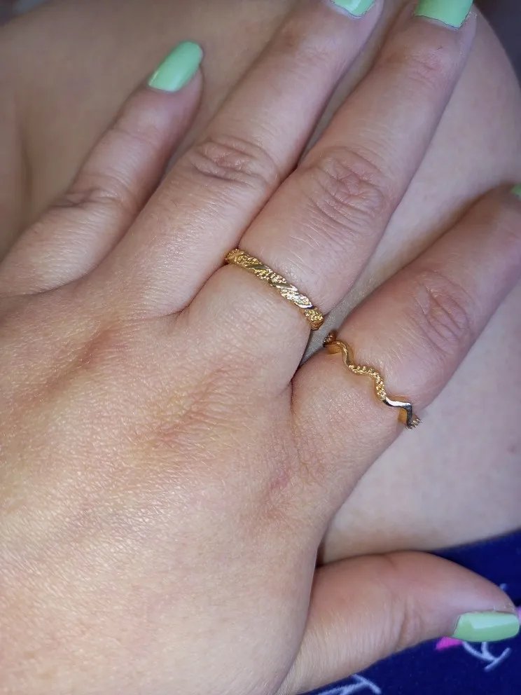 The ring looks very beautiful, the sun shines straight. Ordinary jewelry, of course, bends well, so you need to be careful, so you can pinch your finger. Dimensionless, in the photo for comparison, the ring on the right is gold.