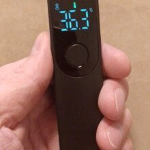 Крутая вещица. Два типа измерения, тело и объект , Цельсий и фаринейт. Компактный маленький, измеряет с градусником ртутным и электронным одинаково точно. Для маленьких детей самое то.