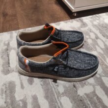 O tênis é legal, leve e confortável, mas o 42 ficou pequeno para meu marido. Dei pro meu irmão que calça 41. Formato meio estreito também, o Hey Dude original não é tão estreito. O acabamento é bom