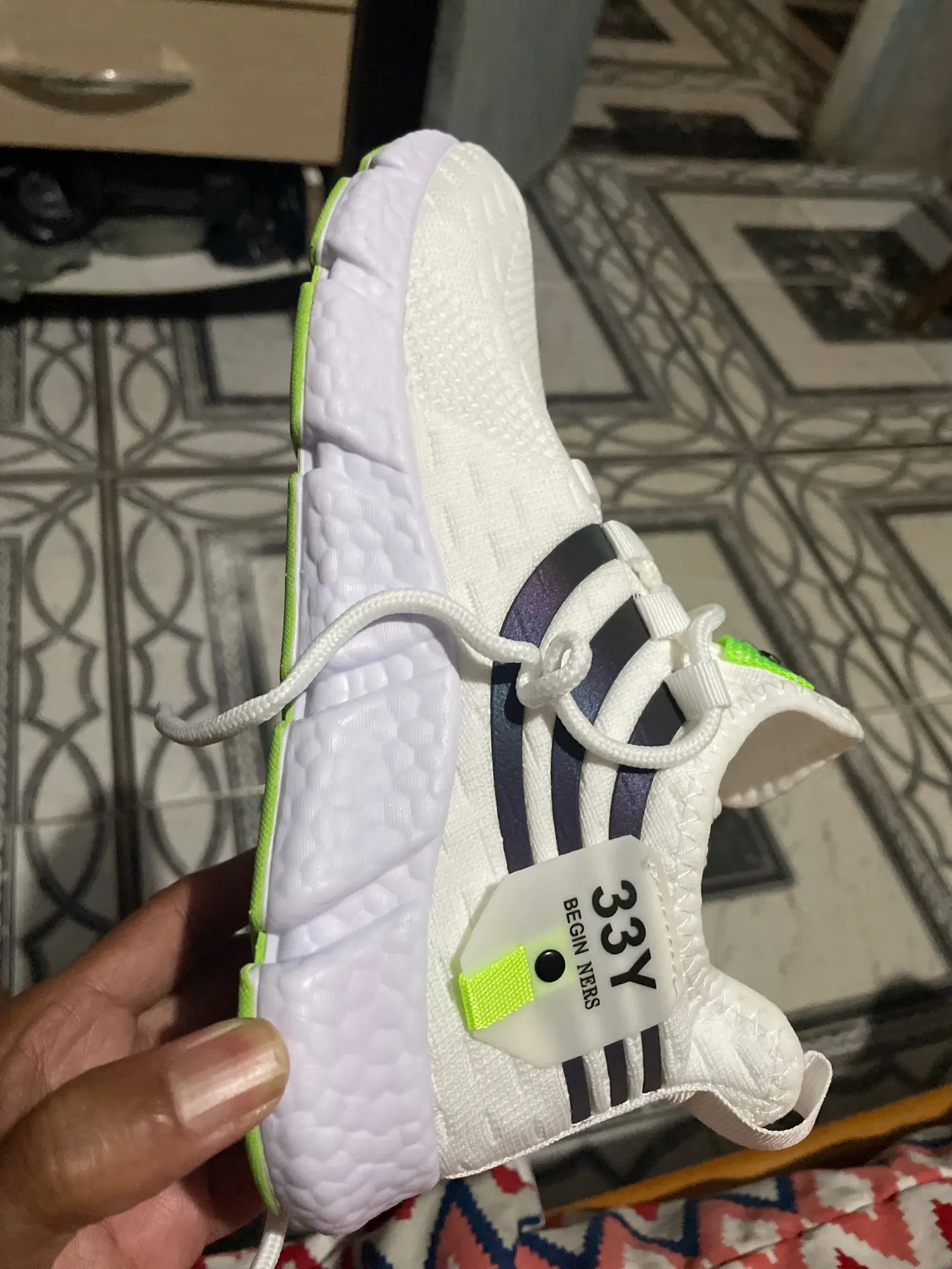 Tênis muito leve, confortável gostei bastante, Drop dele uma altura boa, a entressola dele eu achei um pouco menor porque quando eu piso no chão parece que me pé esta saindo fora da entressola na parte da frente mais pouca coisa talvez possa ser que eu piso torto e nem sei, no Brasil eu calço 44 eu comprei o tamanho 46 ficou certinho na medida certa nem apertado e nem folgado perfeito, cores lindas o tecido parece um branco meio creme. Recomendo muito, achei barato vale a pena ,a durabilidade não dá para dizer, eu usei um dia só ao longo do tempo saberei dizer.