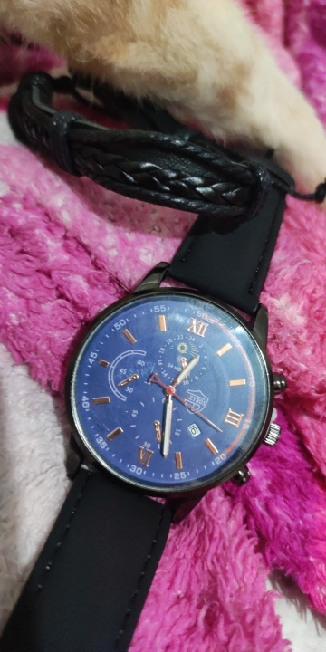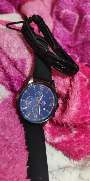 good value for money watch. with tax and shipping, the total was £2.80 only. includes a black leather bracelet in the product