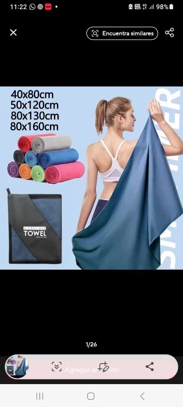 Excelente calidad y precio tamaño ideal para vacasionar, acampar, ir al gimnasio, natación etc. Su secado es casi inmediato, es ligera pero muy resistente y por con su empaque cabe en cualquier pequeño espacio, es mi segunda toalla de microfibra. Realmente la recomiendo mi compra fue del tamaño 80 x 1.60