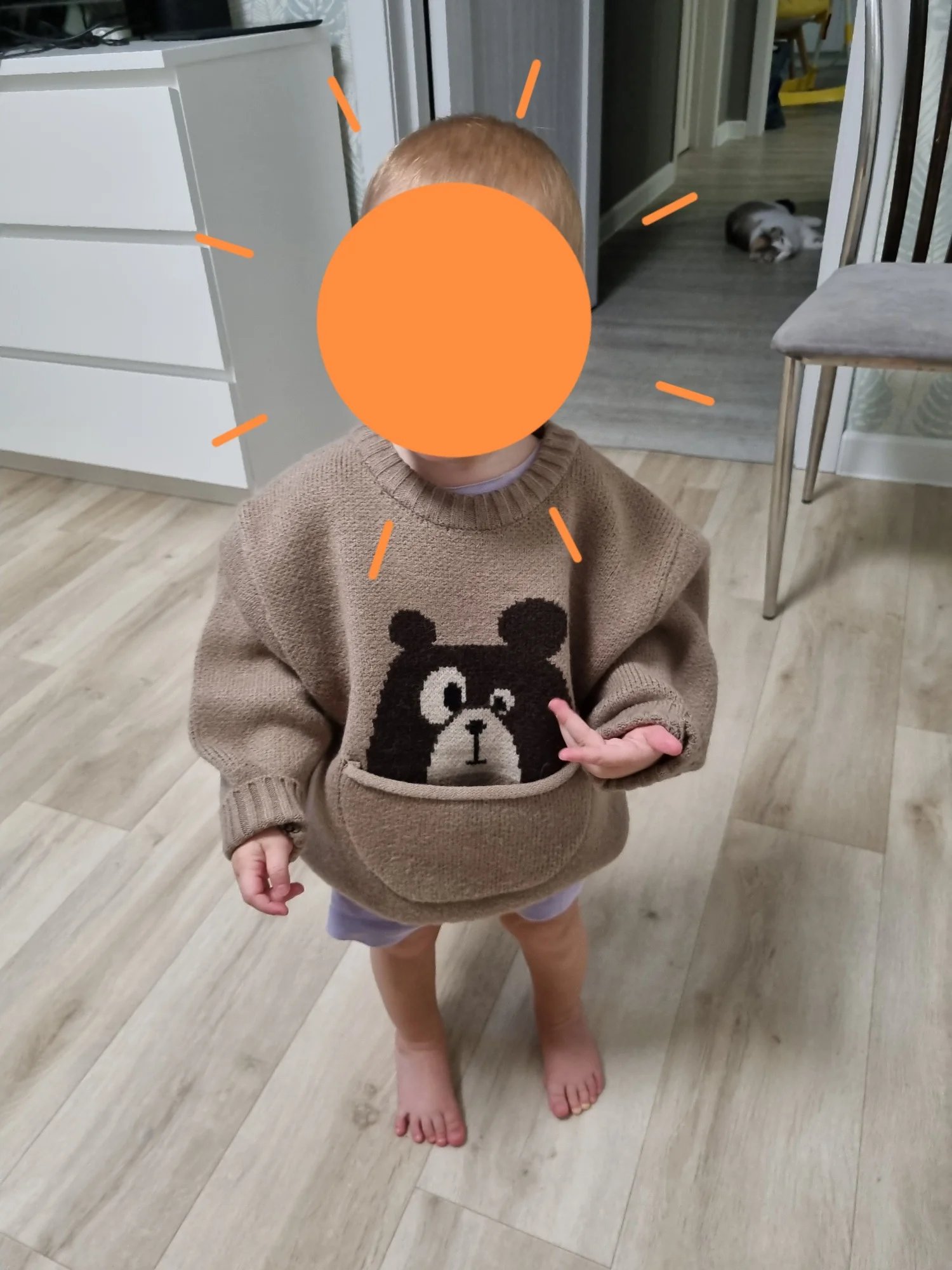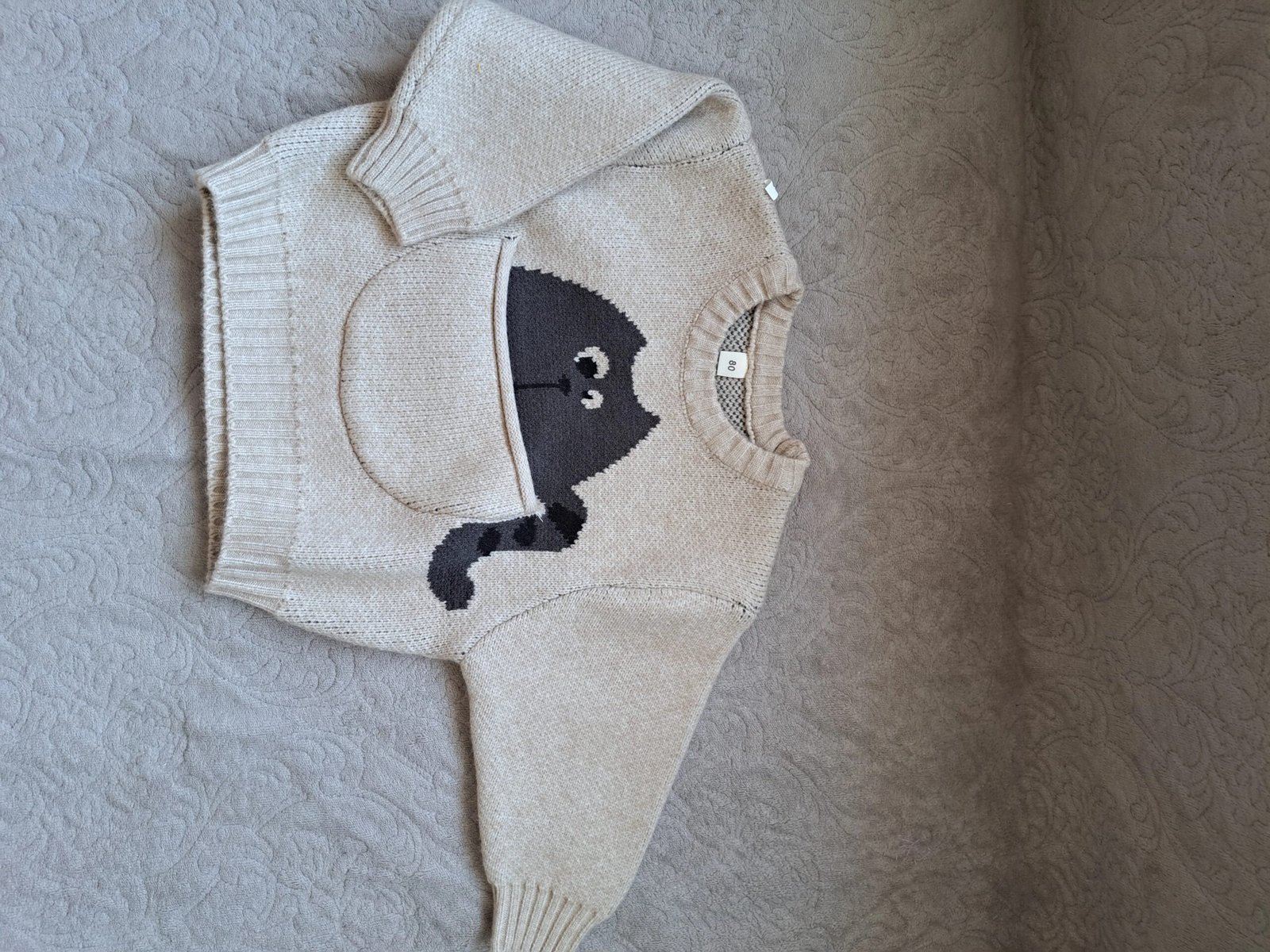 Sweater is of course cool)) it is very warm! For a child with a height of 85 cm ordered a size of 90 2 T-the top is slightly voluminous... but not scary, with a vestAnd the sleeves are bent!