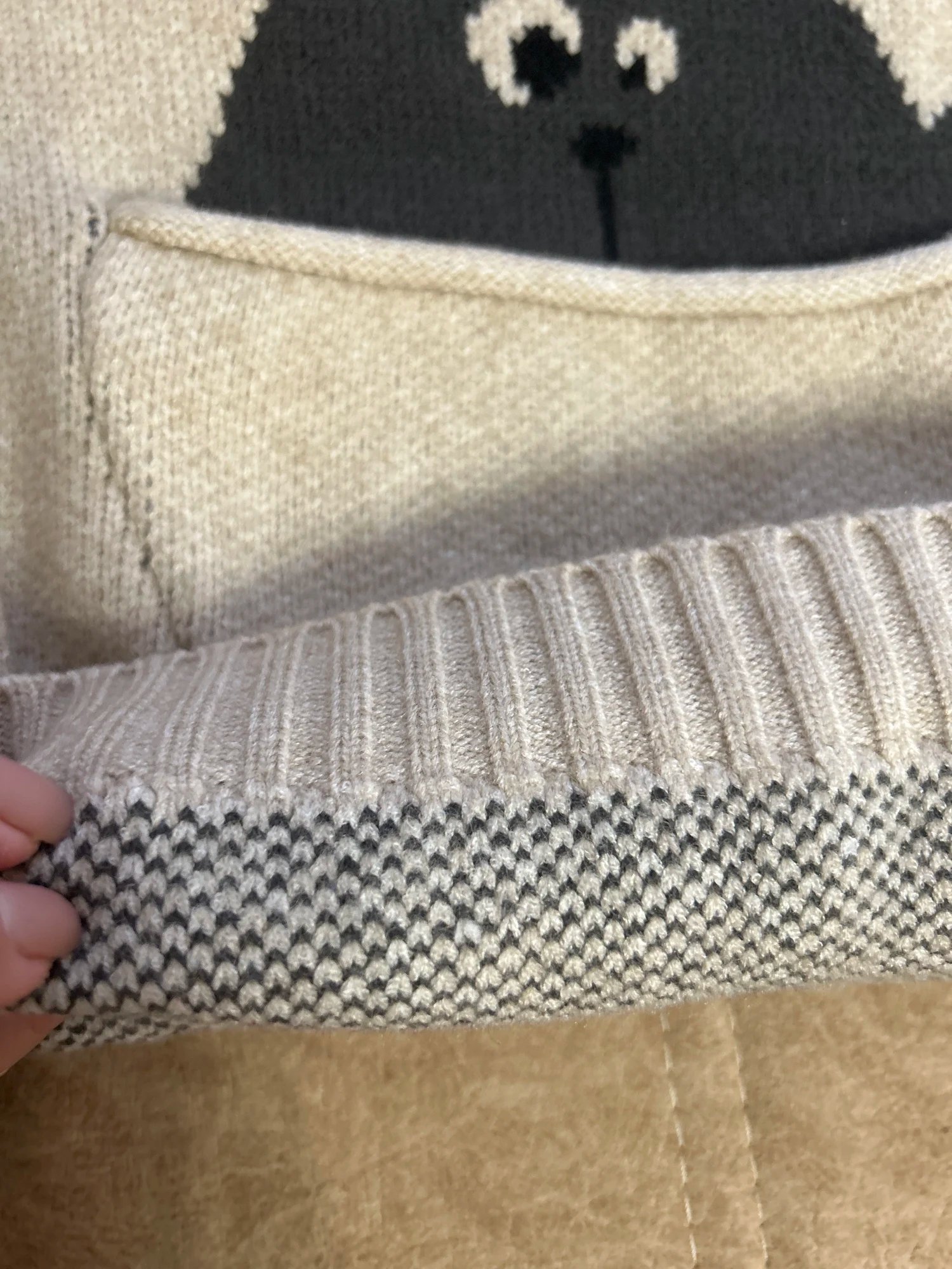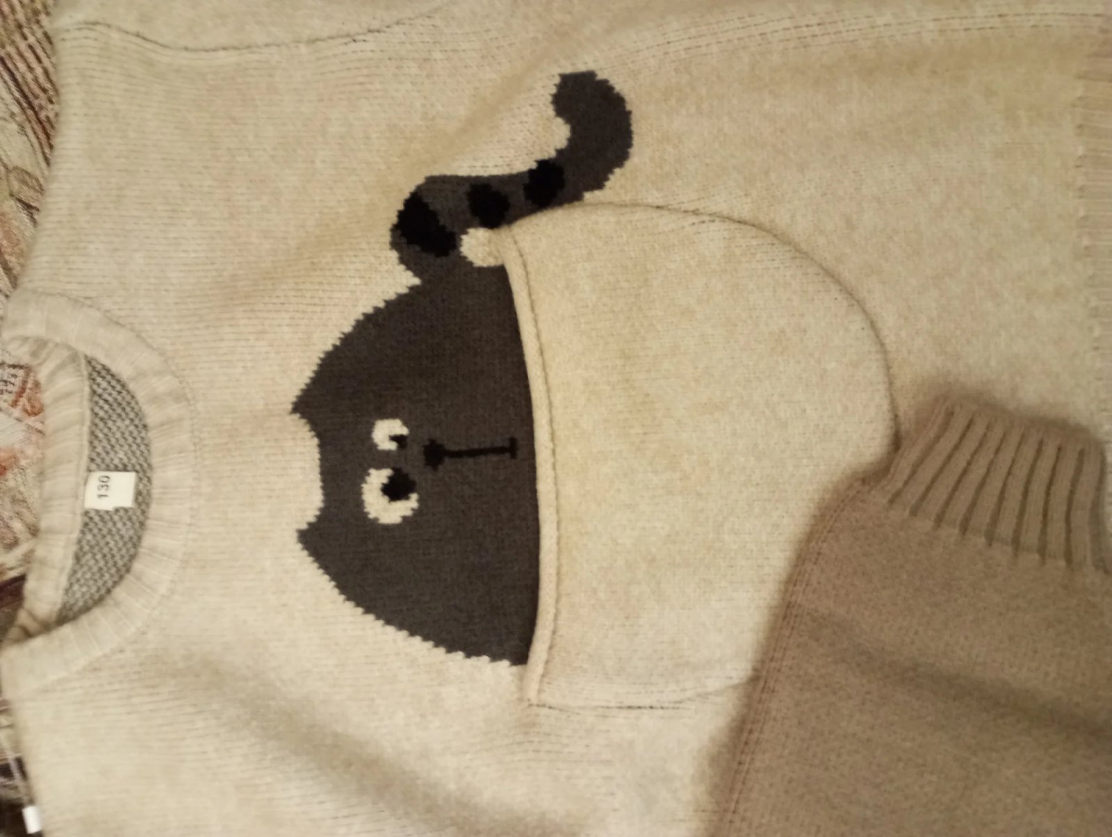 Cute sweater, very thick, warm. One of our favorites
