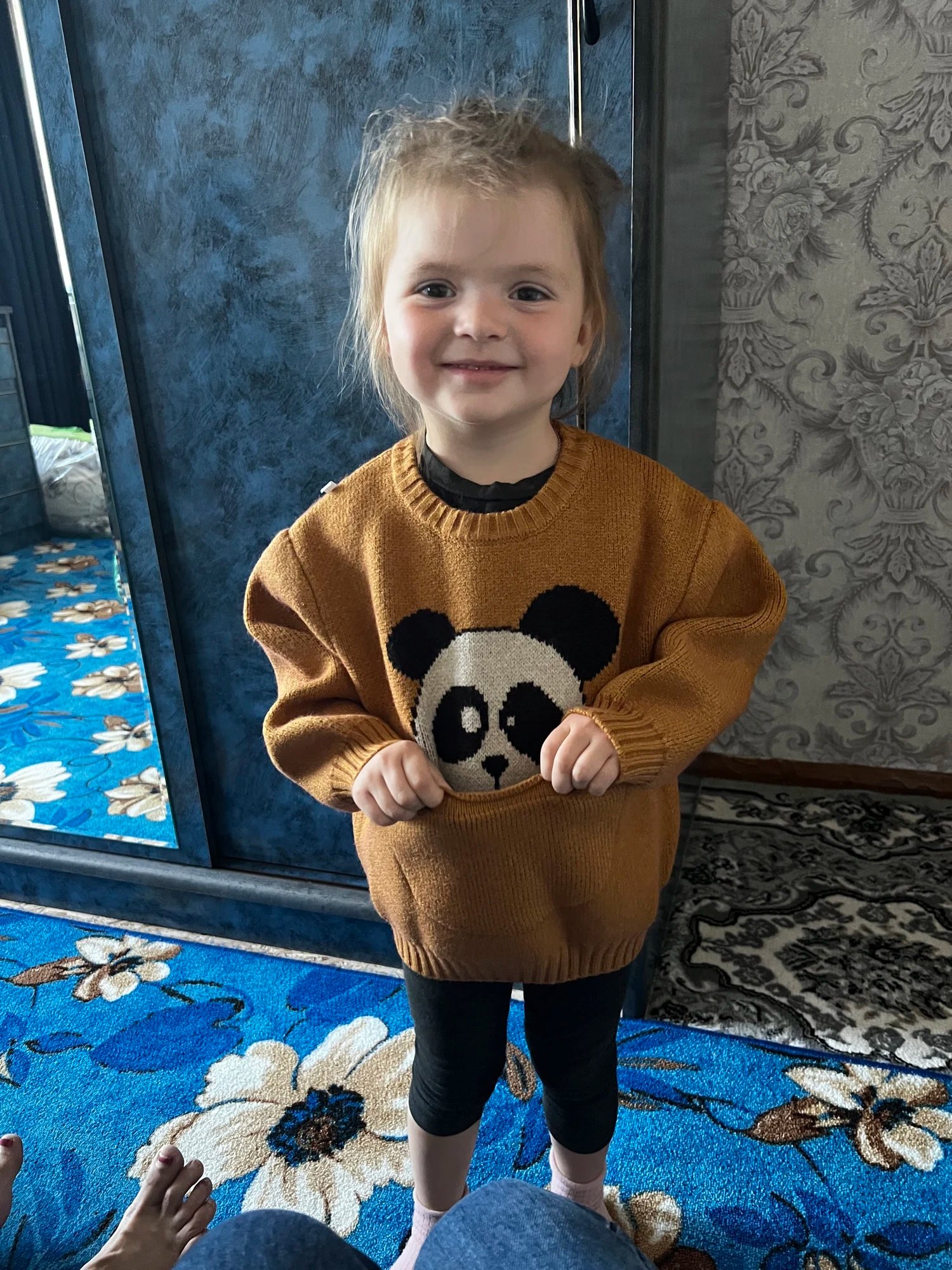 Very cool sweater. Very warm-similar to "angorka". Soft, baby said not prickly. Looks great, the size matches, the thread does not stick out, there are no foreign odors. Packed well, delivery and shipping fast-2 weeks. I am very satisfied with the purchase. The store Thank you.