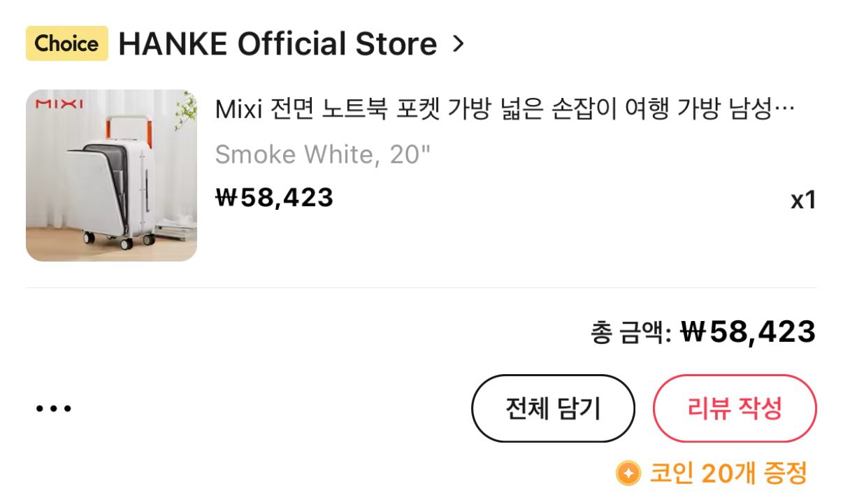 여행 가려고 구매했어요. 확실히 이전에 쓰던 플라스틱 재질에비해 견고하고... 몬가 확장이 안되는 건 아쉽구.. 손잡이가 넓은건 적응이안되지만.. 한번 가서 써봐야할듯! 대체로 ㄱㅜㅅ