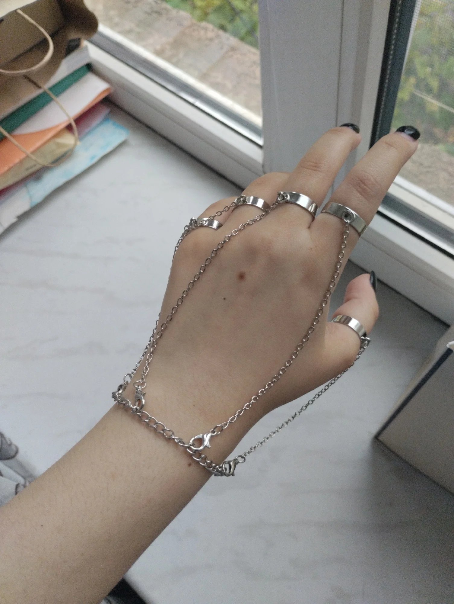 Arrived quite quickly, just like the picture and the description, the rings are all adjustable, the material is good, the product is lightweight and comfortable to wear