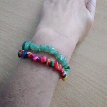 The bracelet is lovely, good size. All pebbles without marriage. Maximum length 23 cm. I think the stone is natural, unpainted