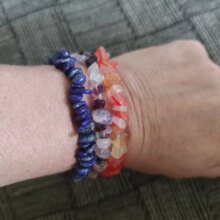 A good bracelet. The pebbles are bright, I hope natural. Thanks to the store.