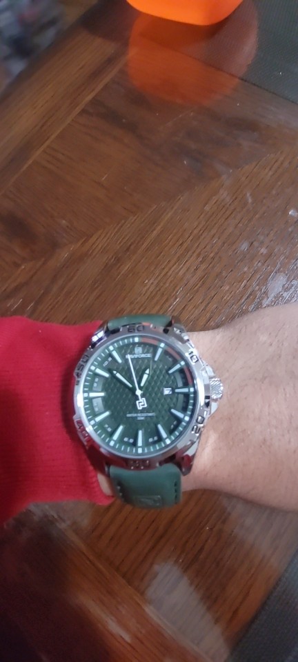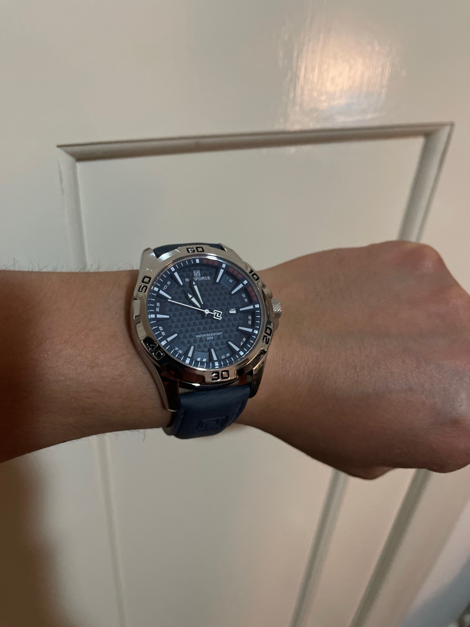 The dial looks really nice. Probably a bit big for my wrist. The straps smell like leather though they don’t feel like the nicest leather. All in all a good looking watch.