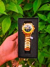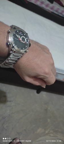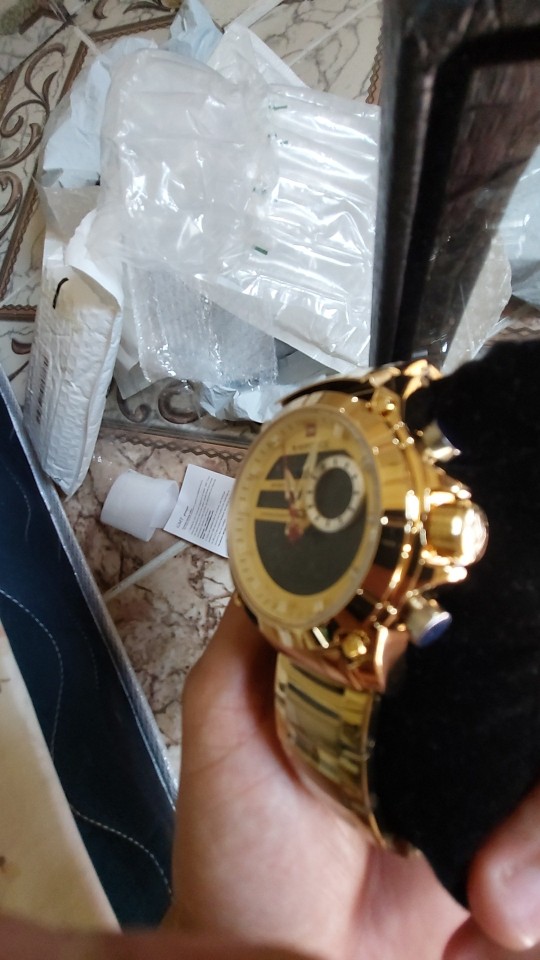 Beautiful product. As per the description. I liked the accessories that came with him. The top luxury box. Flannel for cleaning the lens. Guarantee card. Came I think here's the bracelet reducer but unfortunately the tip is broken and crooked, the rest came complete. Unfortunately late, plus this and the fault of the post office. Congratulations on the product and this and the first of many I will buy friends loved the watch and I have already indicated