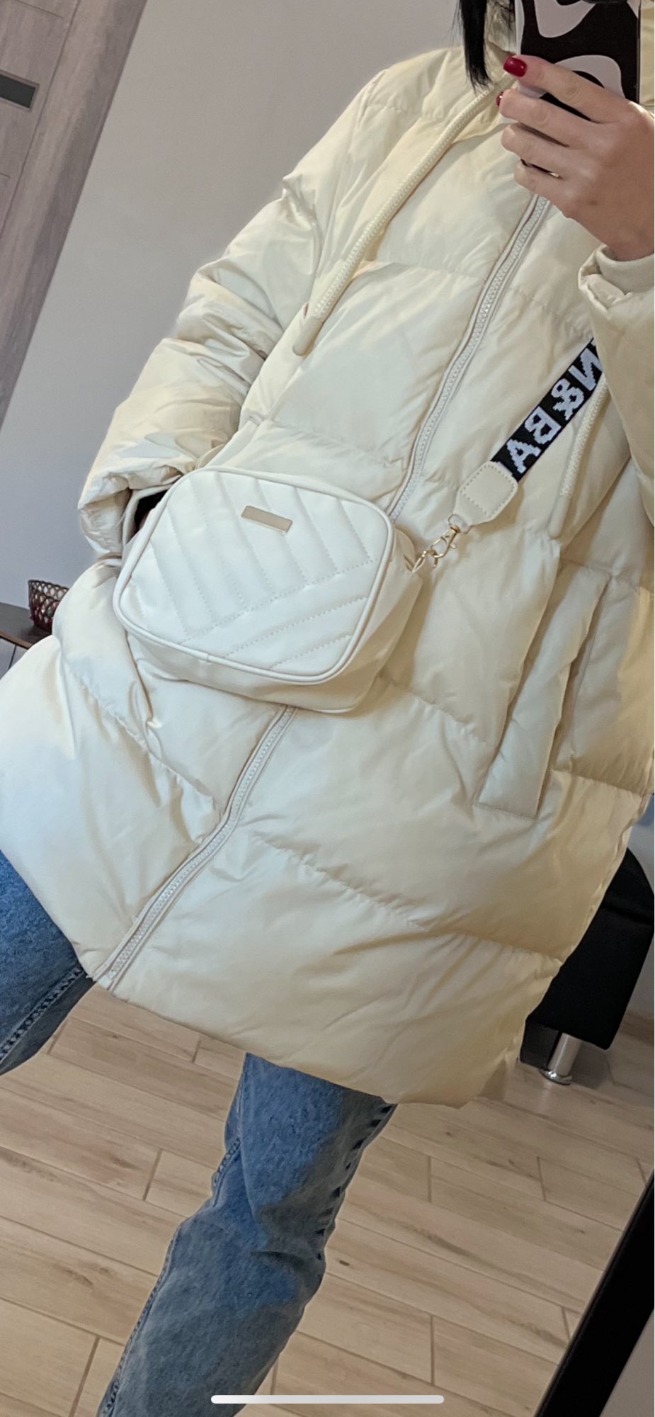 The purse is pretty. Small. The goat is thin. Phone glasses card keys put, just right. I recommend it.