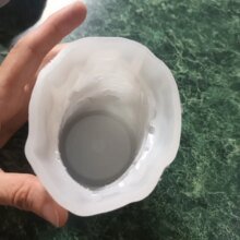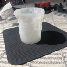 Se ve bien el molde solo que es de silicona flexible, lo cuales muy bueno para desmoldar, pero llegó ovalada por que se aplastó con otro pedido que hice y ahora habrá que ponerla en algún vaso o algo así para que la vela no salga mal😞