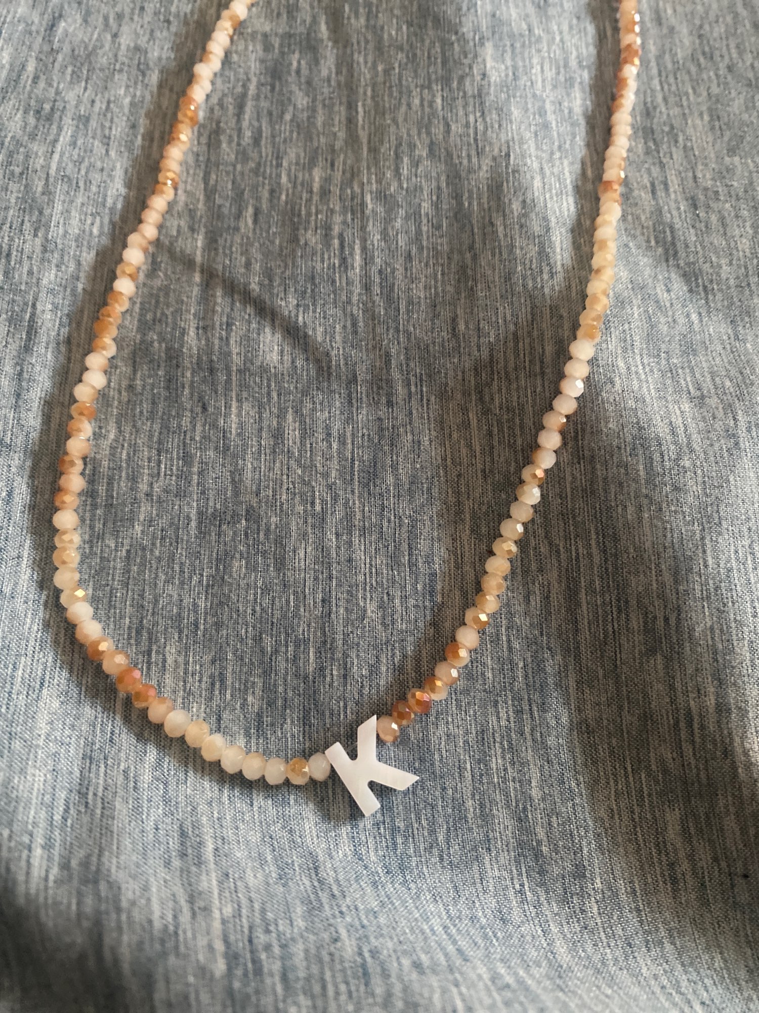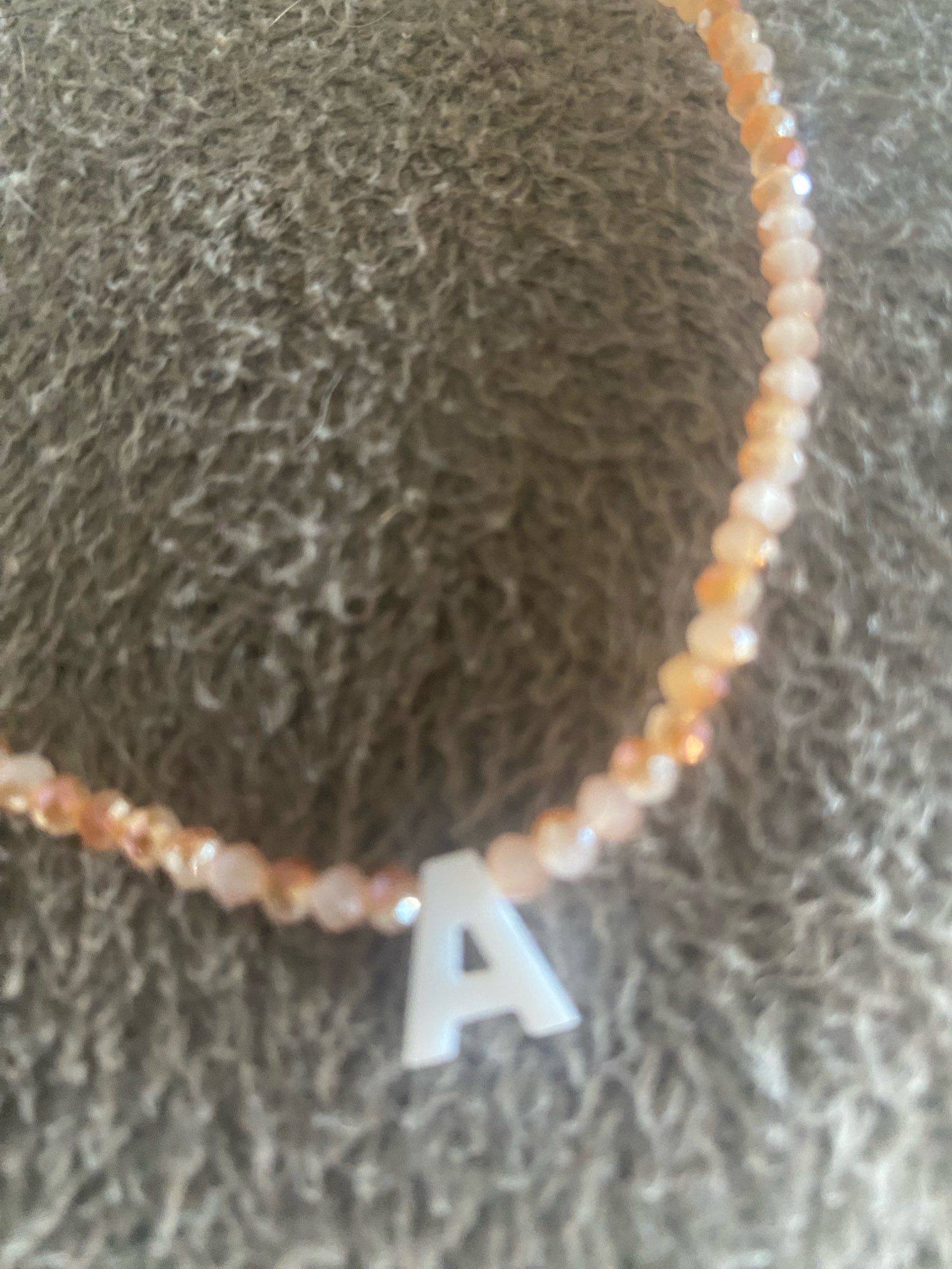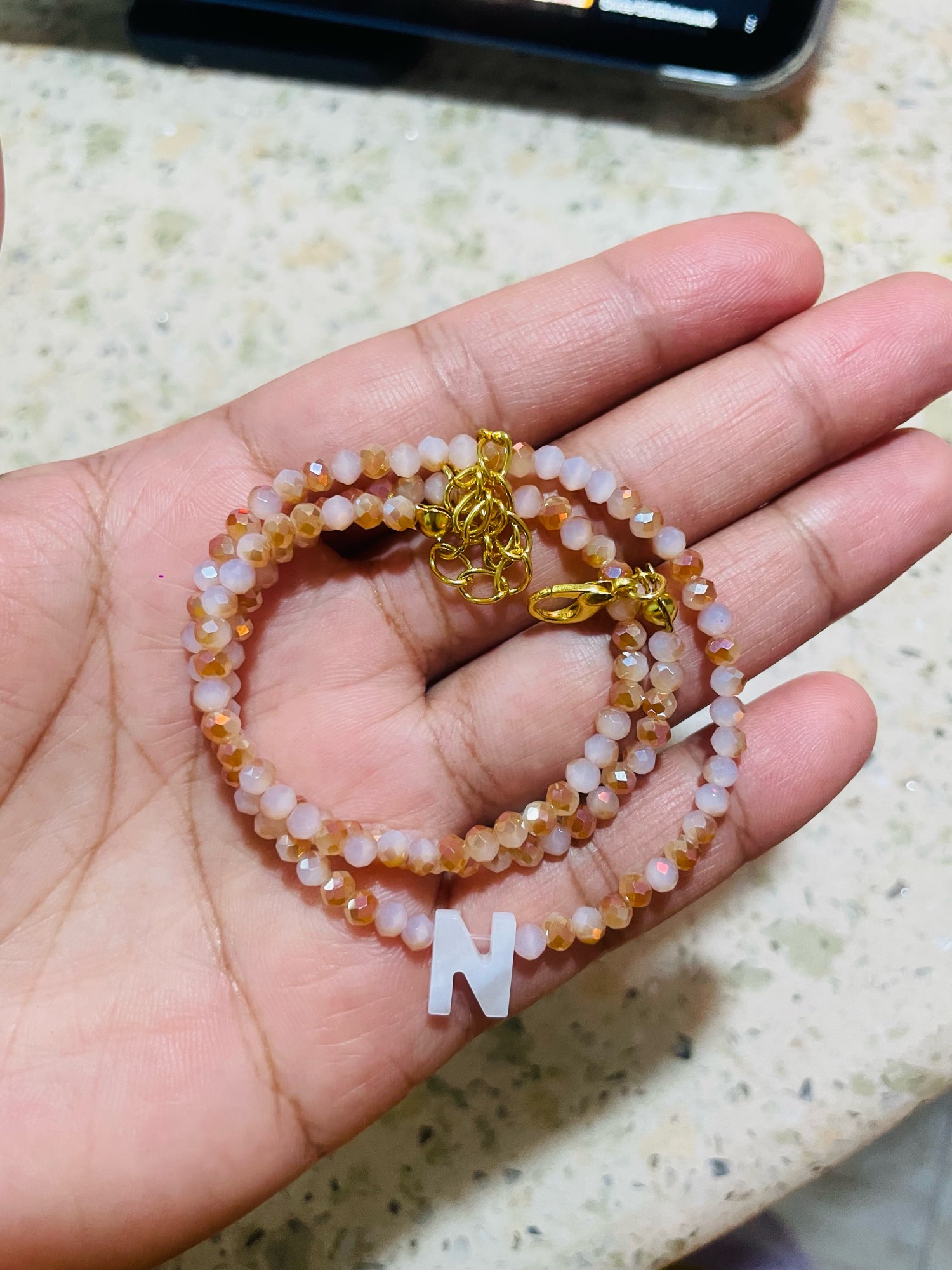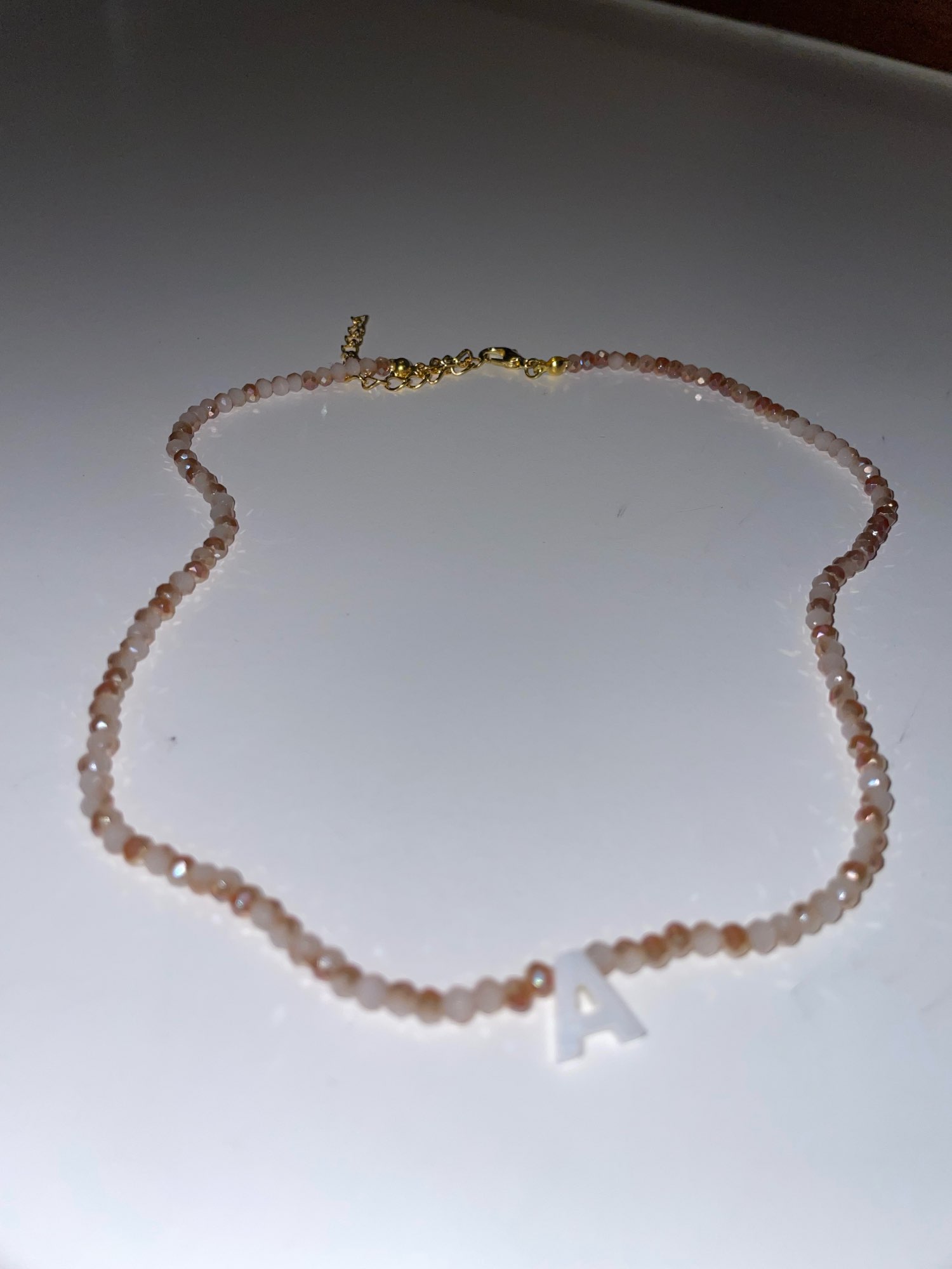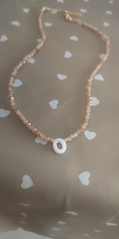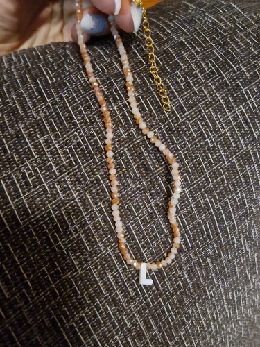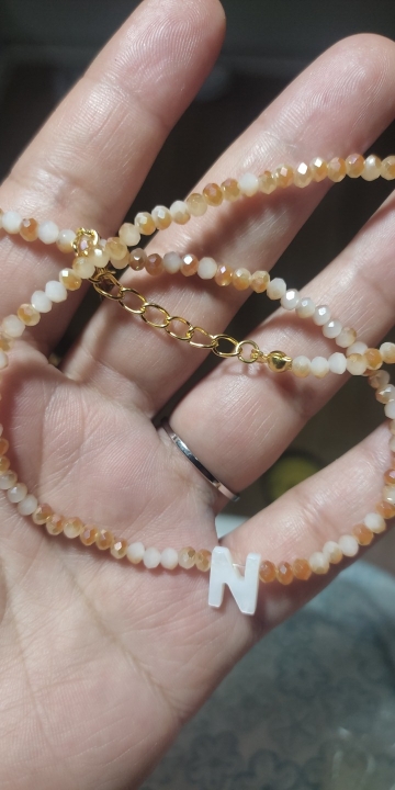 Very good necklace, very beautiful and bright. Letter in mother of pearl.