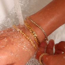 truly high quality! there's a bit of weight to this bracelet, metal has a nice shine as well. it's too long but you can clasp it on the next link up. plating had stuck the clasp but it worked after jiggling.