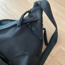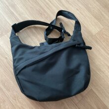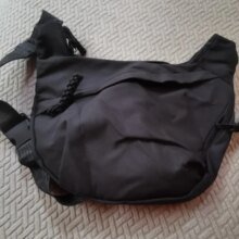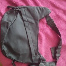 Дизайн, количество карманов(3), длина ремня понравилось. Но я думала, что сумка будет из ткани, а она плащевки (зато защитит от воды)