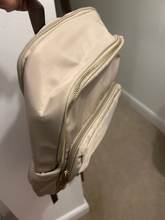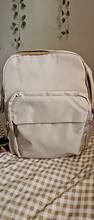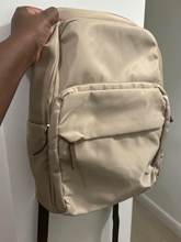 Great backpack! The material look A LITTLE bit cheap, but I love it anyway. It's waterproof, quite big. I use it everyday now - instead of a purse. Very comfortable. The only thing - I'm not sure if the zippers gonna work for long.