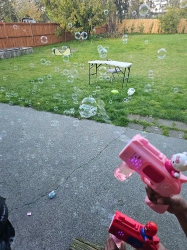 it works amazing my girls love it this was definitely worth the buy blows out so many bubbles the girls go crazy over it keeps them busy and they have fun 😊 very happy and satisfied with this product