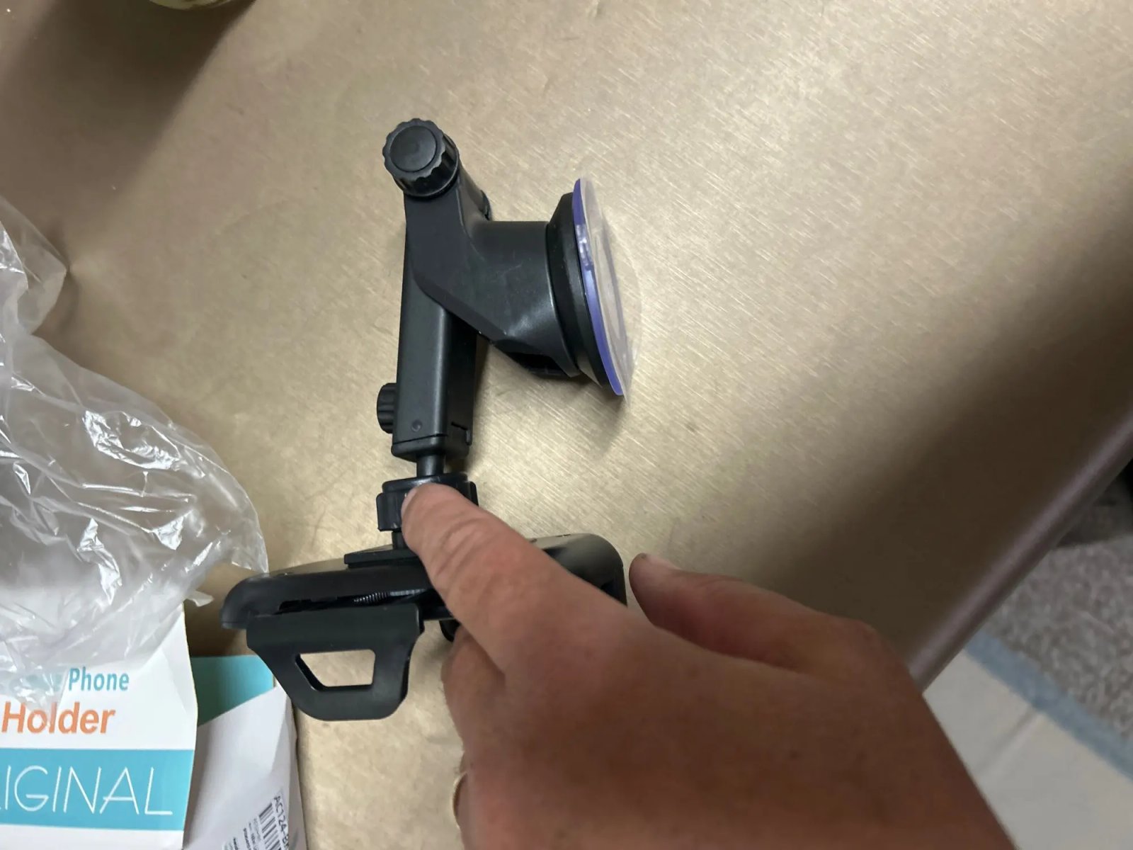 la caja venía un poco deteriorada y el plástico protector de la ventosa estaba desprendido, por lo que la ventosa se pegó a la caja.
