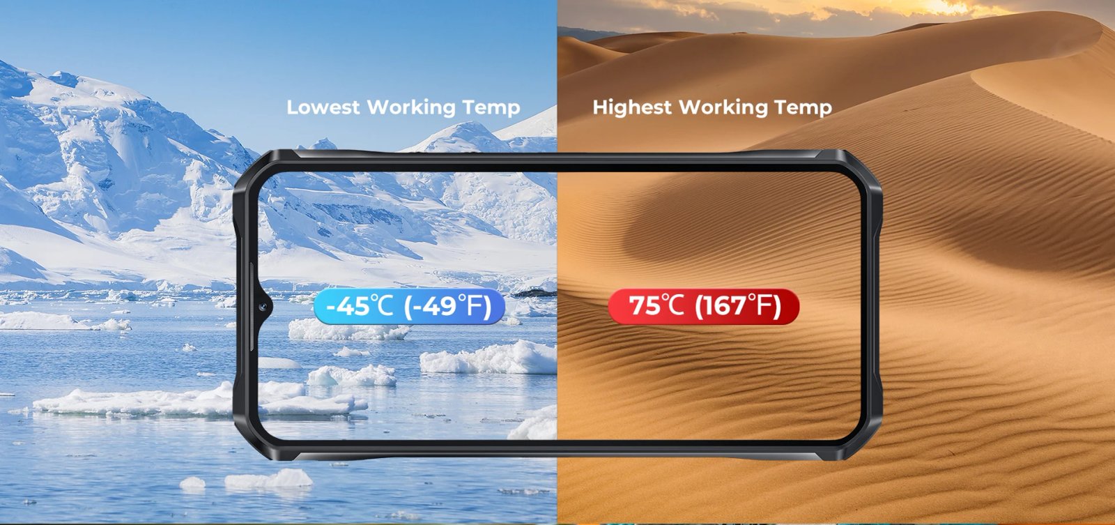 Certified by IP68 rating, this smart rugged phone can be immersed in 1.5 meter water for up to 30 minutes. It’s also IP69K certified to withstand high-pressure water jets, and MIL-STD-810H certified to withstand a 1.5 metre drop.