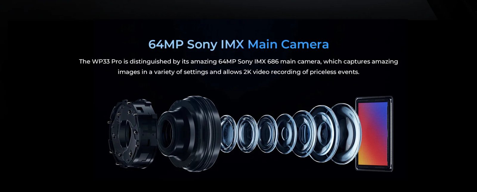 The WP33 Pro is distinguished by its amazing 64MP Sony IMX 686 main camera, which captures amazing images in a variety of settings and allows 4K video recording of priceless events.