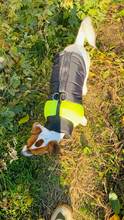 Жилетка суперова! Коштує кожну копійку. Хороша тканина, всередині фліс, шви всі акуратні, виглядає дуже якісно! Сьогодні гуляли в +1, собака задоволена) по розмірах: хл ідеально підійшов на таксу 7,5кг. В грудях впритул - у собаки десь 50-51 см ог. По довжині спочатку здалась мені короткою, але на вулиці стало очевидно що довжина теж ідеальна - до хвоста. Спинка у собаки 39-40 см. Загалом дуже раджу! Чудовий товар за свої гроші!