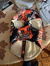Дуже швидка доставка. Якість на найвищому рівні! На флісі, тоненька. На французького бульдога 17кг взяли розмір 4ХL, то сіло чудово не сковує рухи, по довжині закриває повністю спину. Застібка на спині і є кільця для посвідка, що є дуже зручно. Дуже задоволена якістю та замовленням.