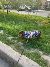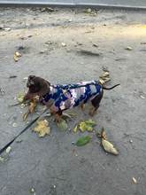 Отличный костюм для таксы,огромное спасибо,идеально подобрано по размеру,цвет соответствует выбранному,качество супер!!! Огромное спасибо продавцу,5+++! Пришли на Украину очень быстро,за 10 дней!)