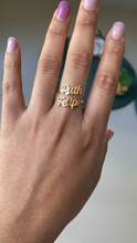 It's super cool, I have little fingers I spend a 14 ring, this one is a little bigger but I put it on my middle finger and although it dances a little I understand it, so I take my family close to me. It grazes a little but does not hurt. I don't think it lasts I look at the tone but I love seeing the names of my loved ones, thank you and see you soon.