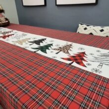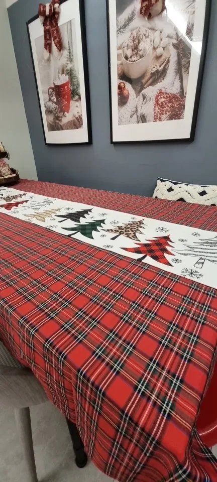 Table cloth has a Christmas feel. Added a table runner and it works well. Table cloth is not thick but it's still workable.